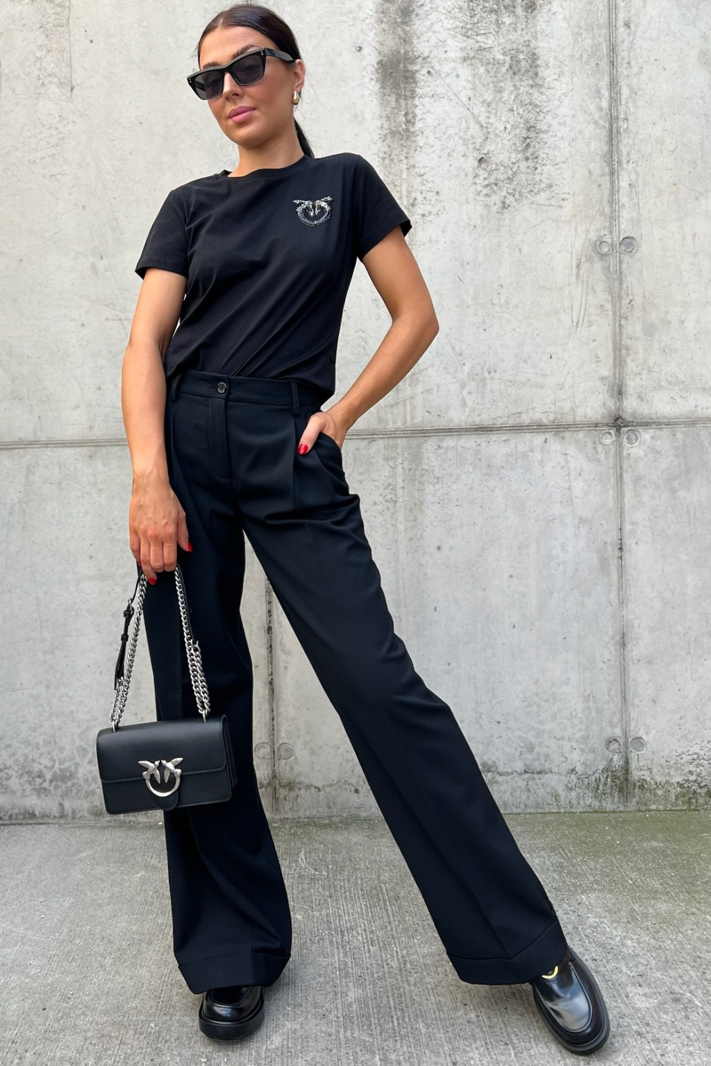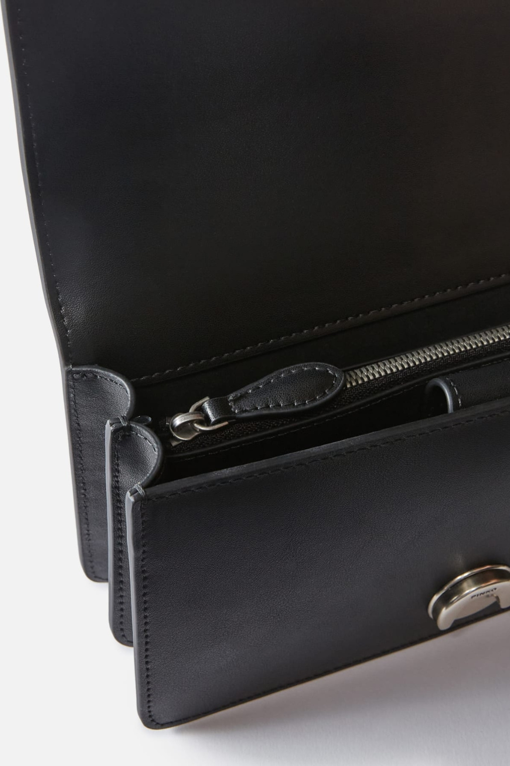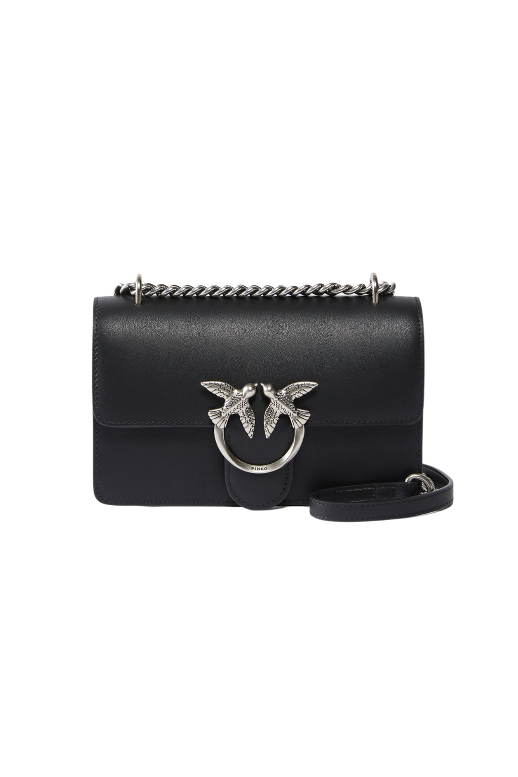 Dámská kabelka PINKO v černé barvě se stříbrnými doplňky.