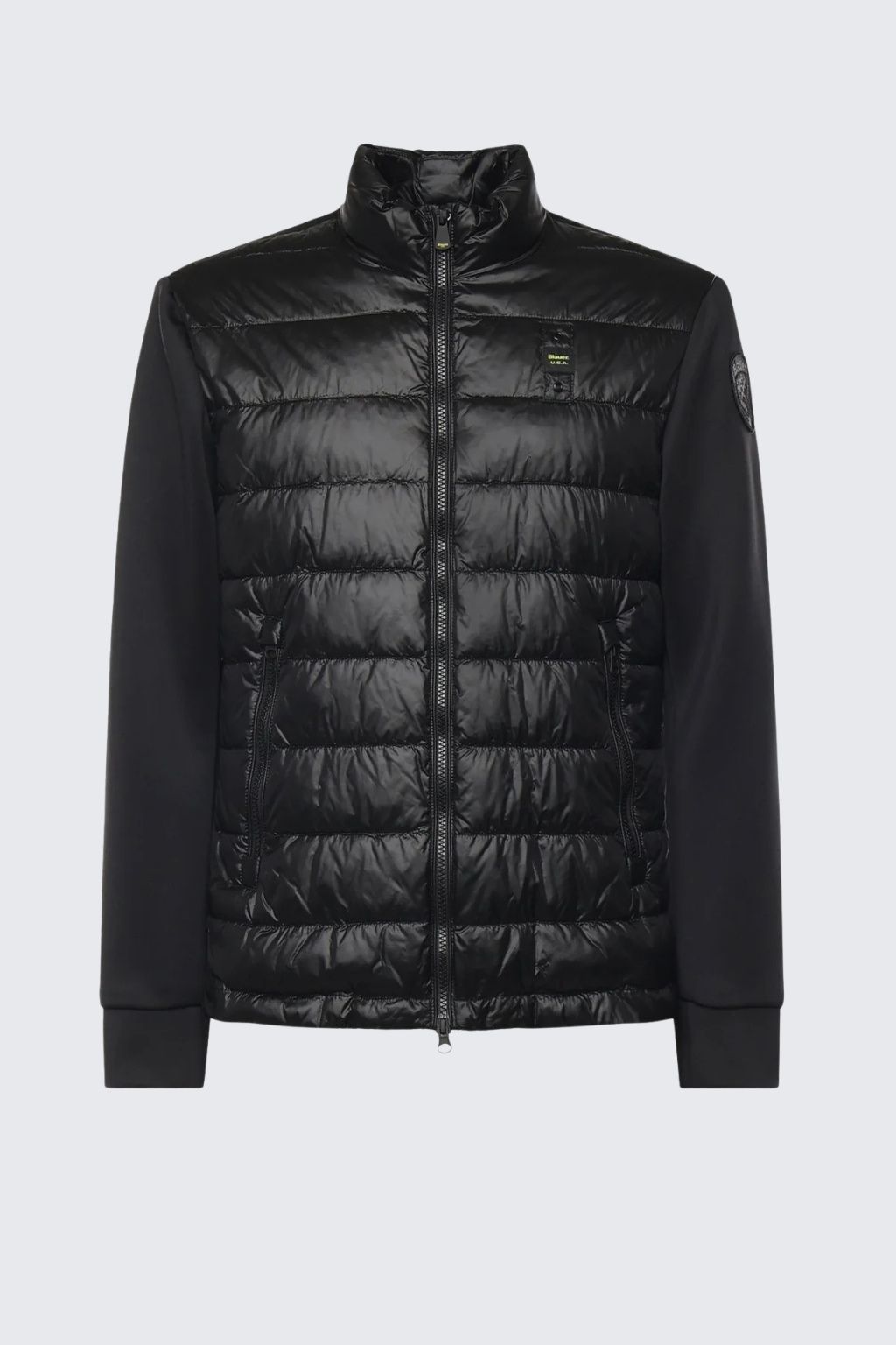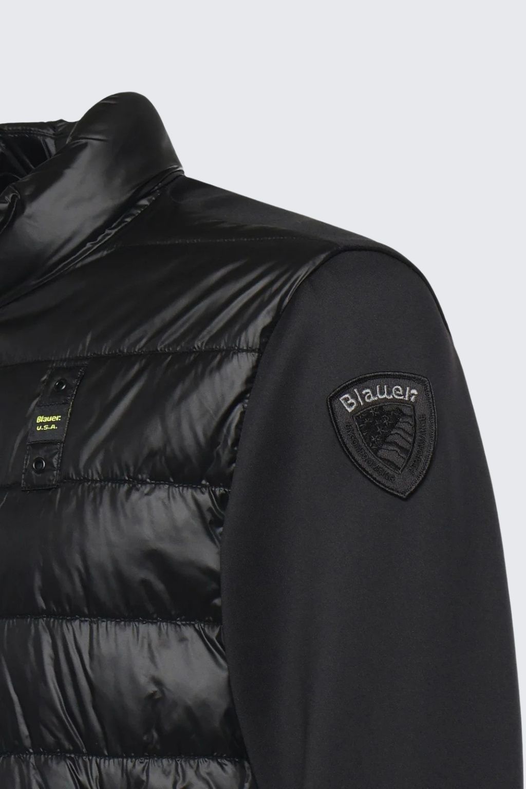 Pánská bunda značky BLAUER je vodorovně prošívaná a má syntetické zateplení. Má standardní délku a přiléhavý střih. Model má dlouhé rukávy s manžetou vespod. Zapínání bundičky je po celé délce na dvoucestný zip, u krku je krátký límeček. Po stranách jsou dvě šikmé kapsy na zip a na hrudi je vlevo doplněný štítek s nápisem značky BLAUER. Na levém rukávu je erb s logem značky.