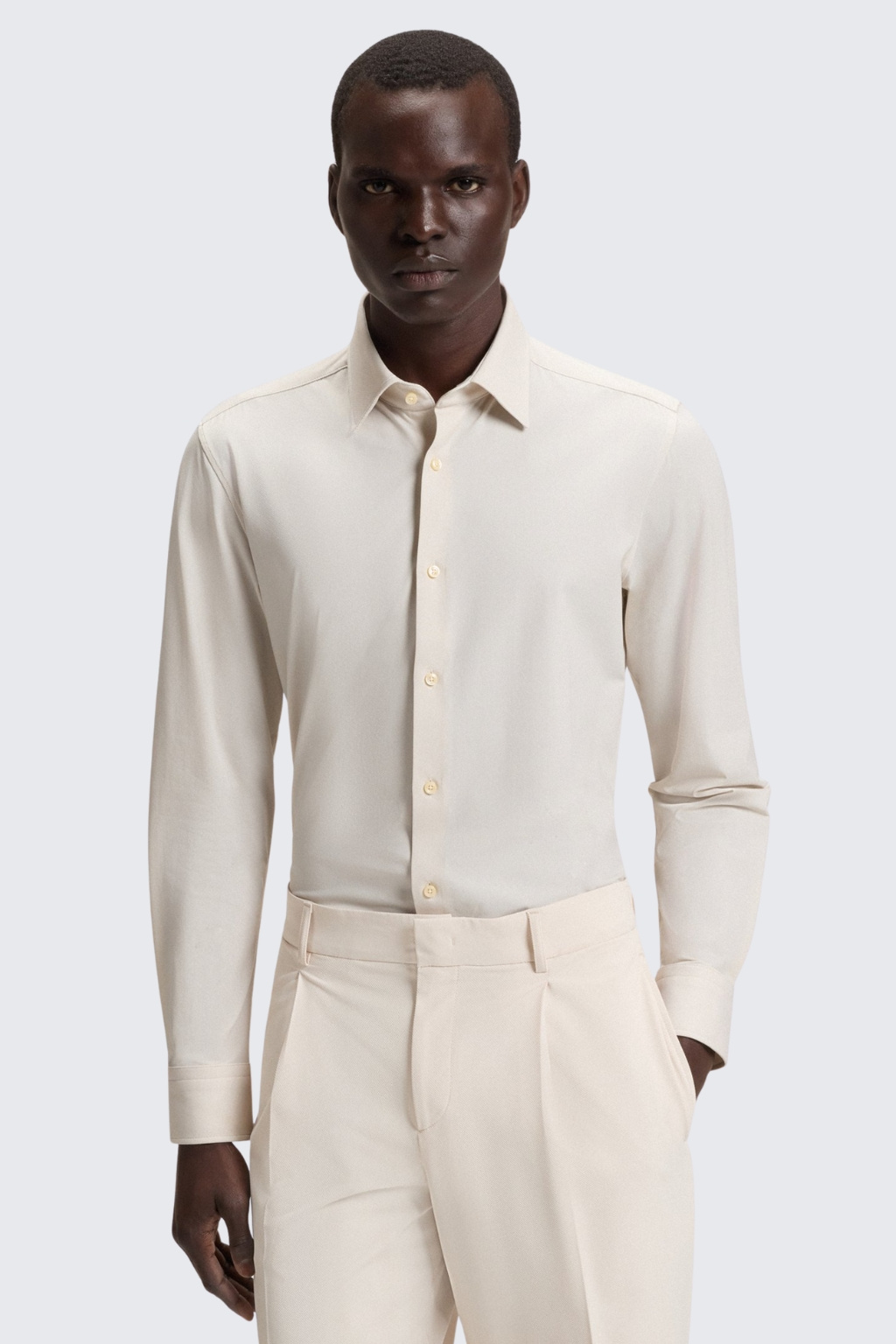 Pánská košile BOSS Black P-HANK-kentC1-222 v krémové barvě.