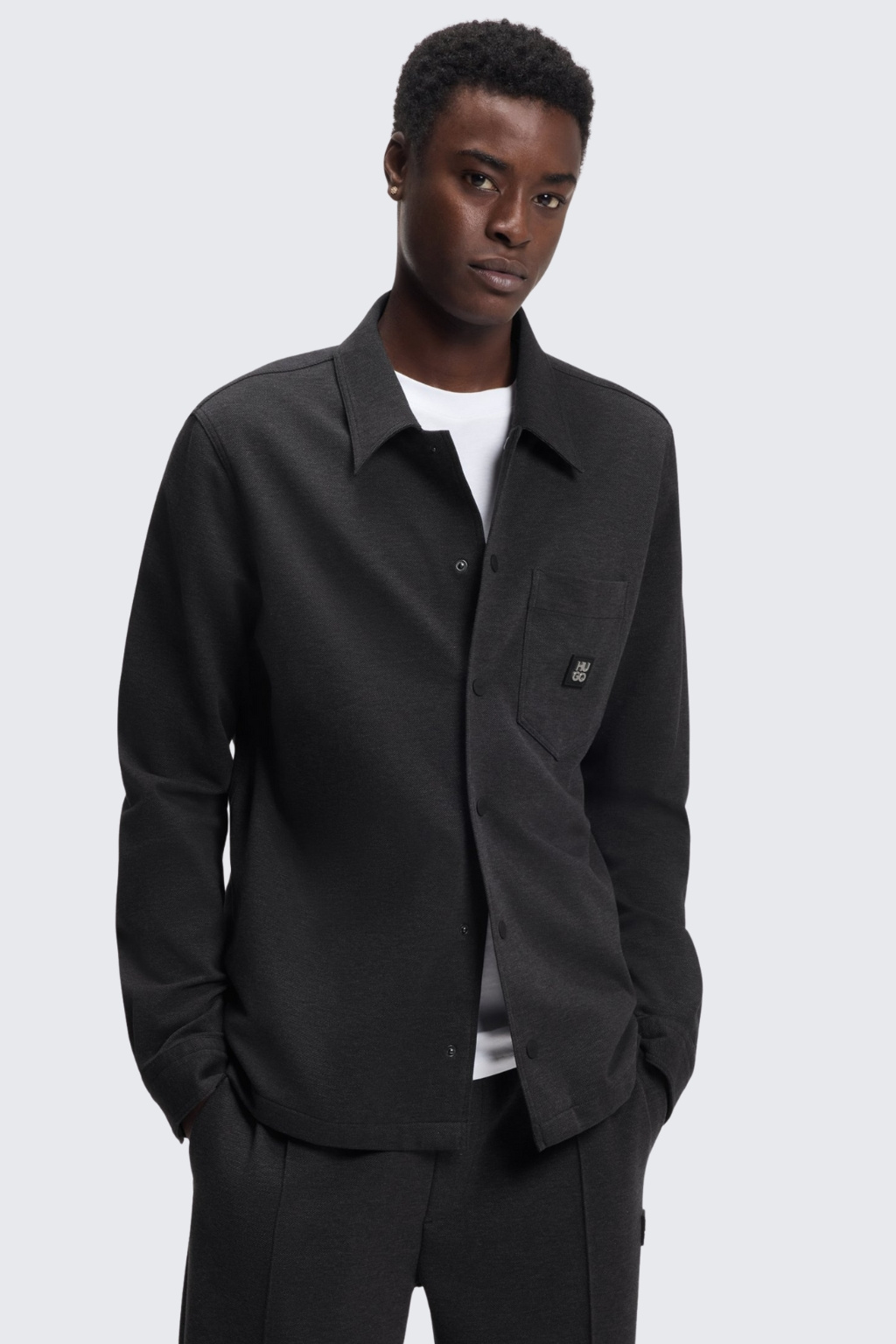 Pánská košile značky HUGO má volný střih, košilový límeček a zapínání po celé své délce na patentky. Model má jednu náprsní kapsu, na které je malé logo značky HUGO. Košile má zkrácenou délku a na koncích rukávů knoflíky.