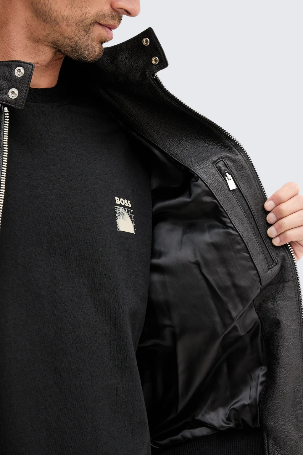 Pánská kožená bunda BOSS Black H-Moiner. Tento kousek klade důraz na každý detail a kvalitní materiály, aby vám tak zajistil vaše maximální pohodlí. Tento produkt je skvělou volbou pro každou příležitost, ať už se chystáte na formální událost či si jen chcete užít pohodový den. Přidejte tento stylový a univerzální produkt do svého šatníku.