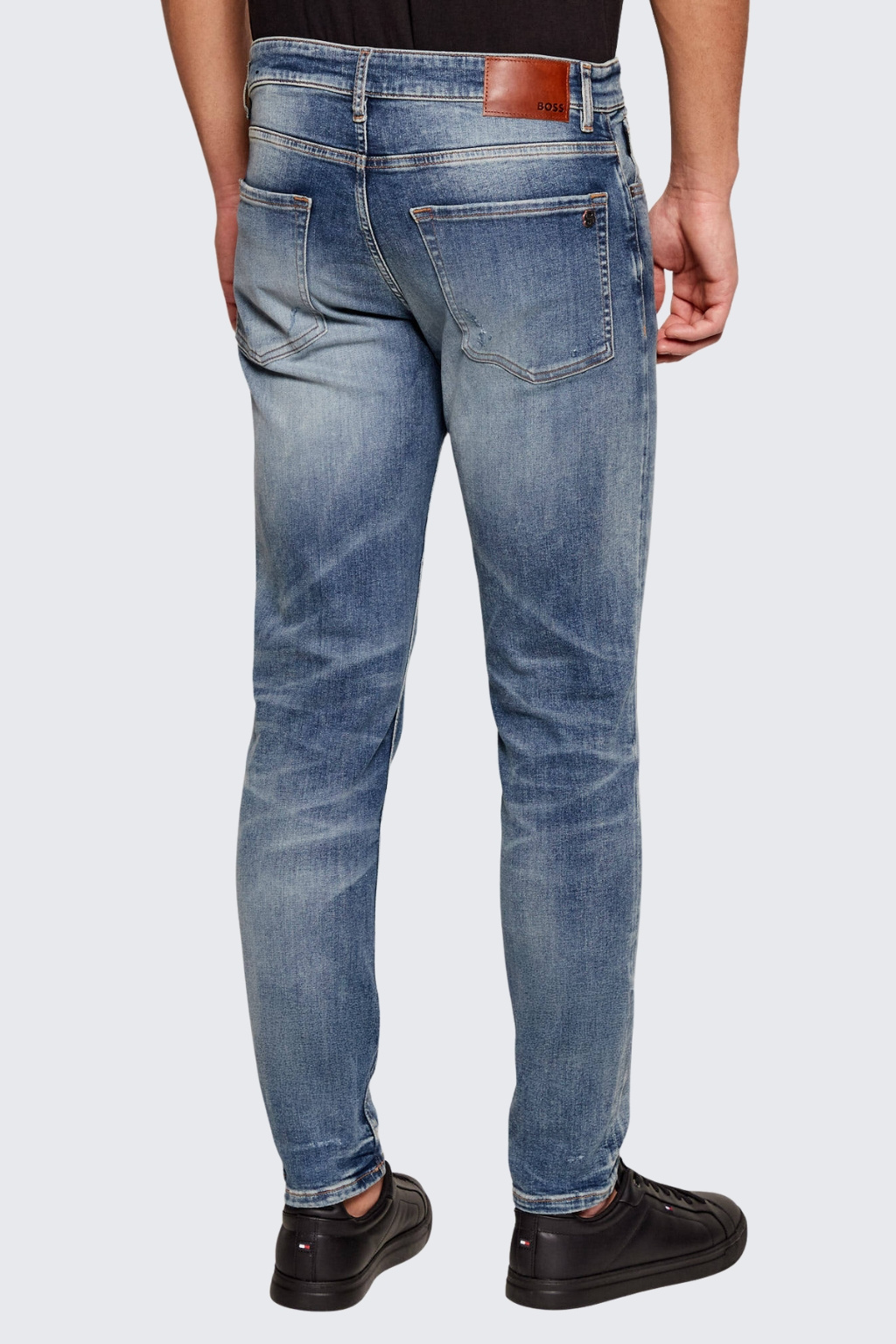 Pánské džíny značky BOSS mají klasický pas a slim fit střih. Model má zapínání na zip a knoflík a v pase poutka pro doplnění opasku. Kalhoty mají pět kapes, tři na přední straně a dvě zezadu. Na malé přední kapsičce je štítek BOSS. Na zadní straně je v pase kožená nášivka s logem značky BOSS.