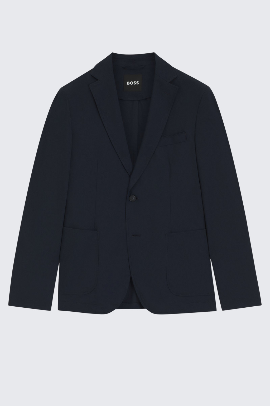 Pánské sako z kolekce BOSS má slim fit střih a je vyrobeno z jednobarevné látky. Model má klasické klopy a pohodlné zapínání na knoflíky. Po stranách jsou dvě kapsy a na hrudi jedna náprsní.