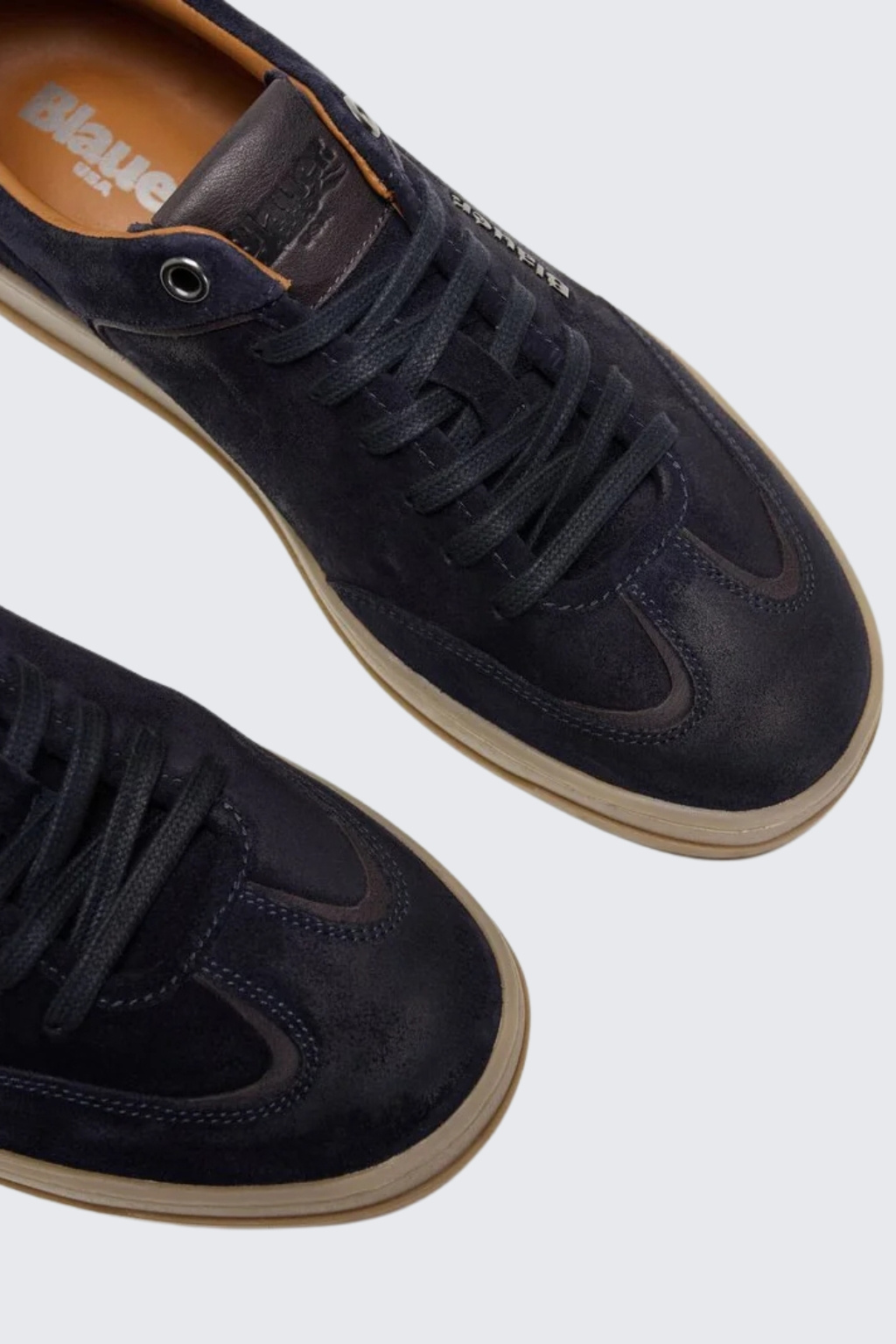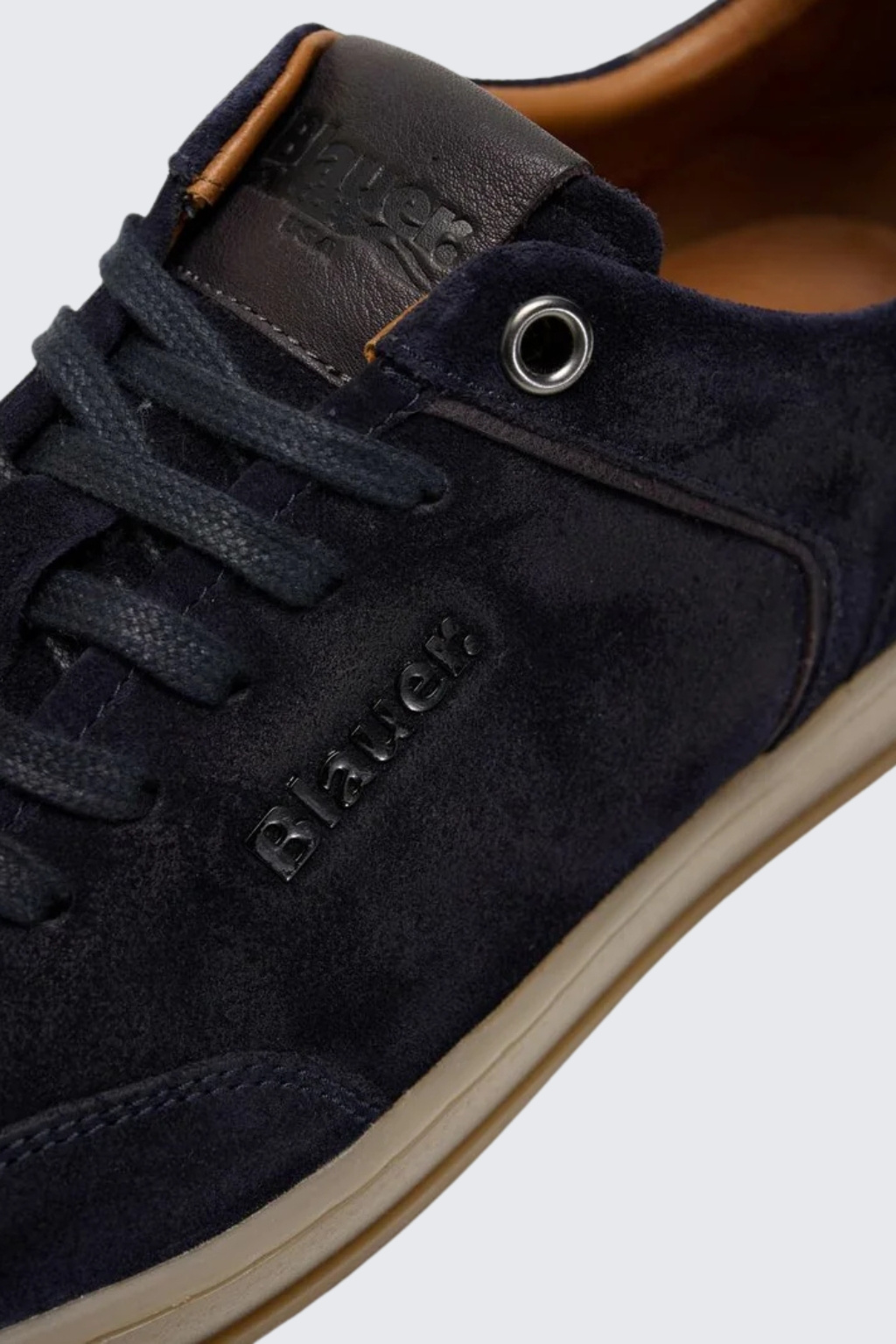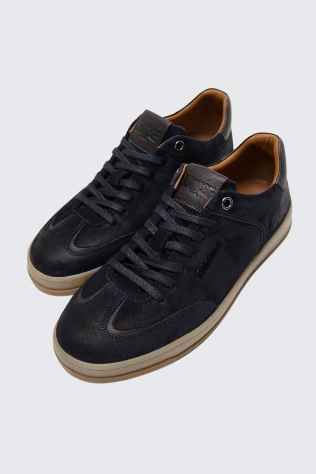 Pánské tenisky značky BLAUER. Model je vyroben z kombinace semiše, přírodní a ekologické kůže. Boty mají vyztuženou patu a kulatou špičku. Zavazování je na ploché tkaničky. Na vnější straně boty je nápis značky BLAUER a na jazyku a patě taktéž.