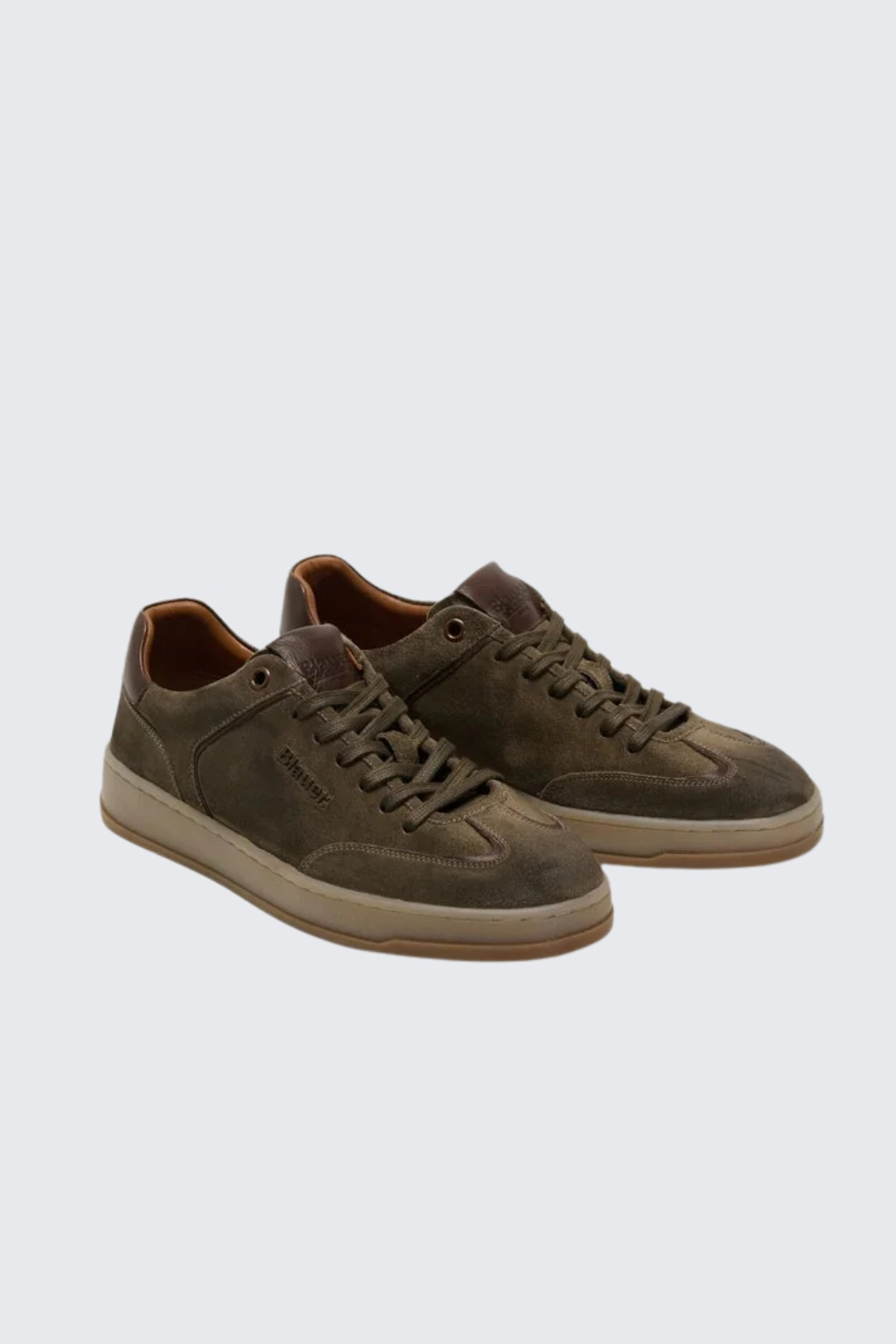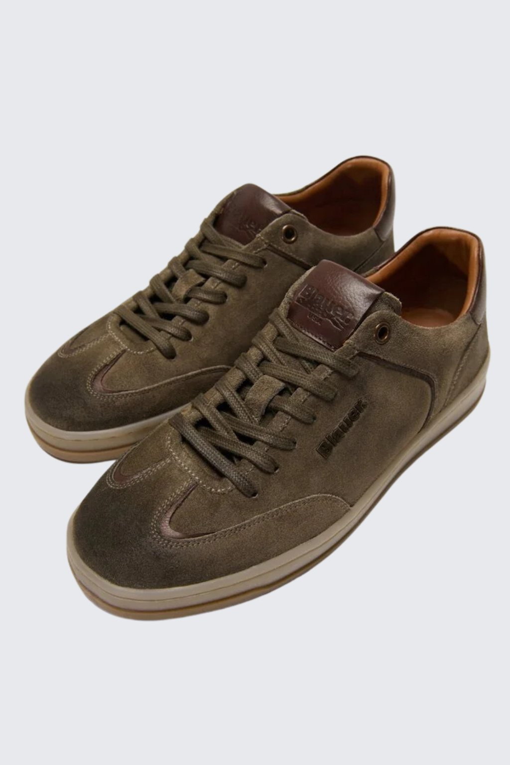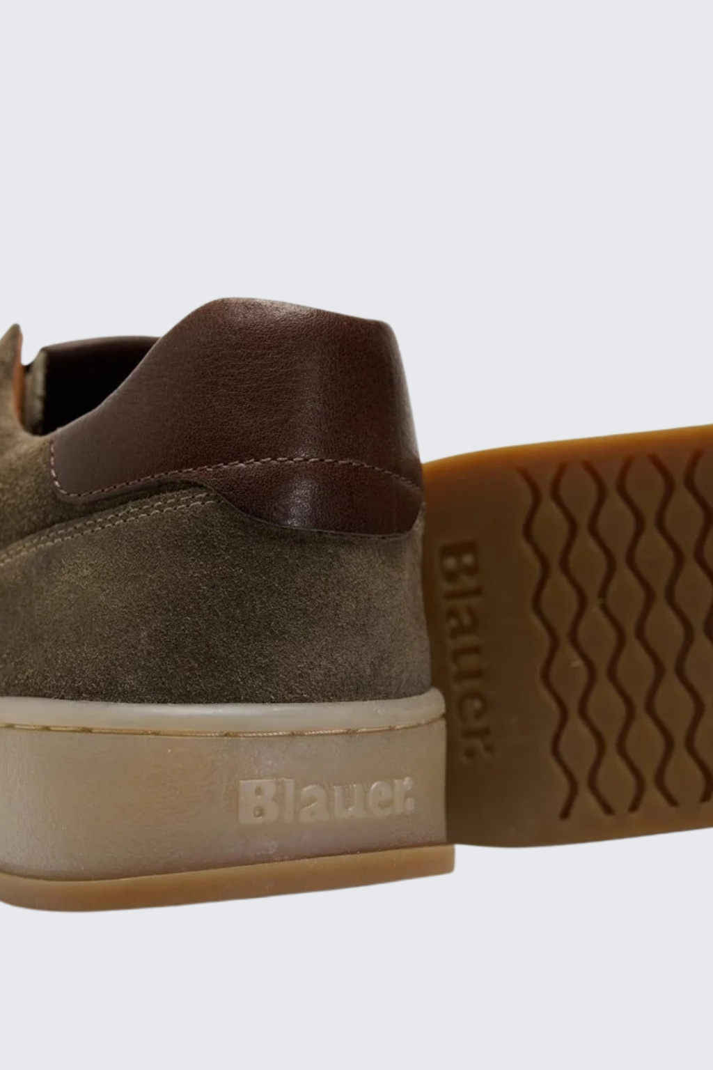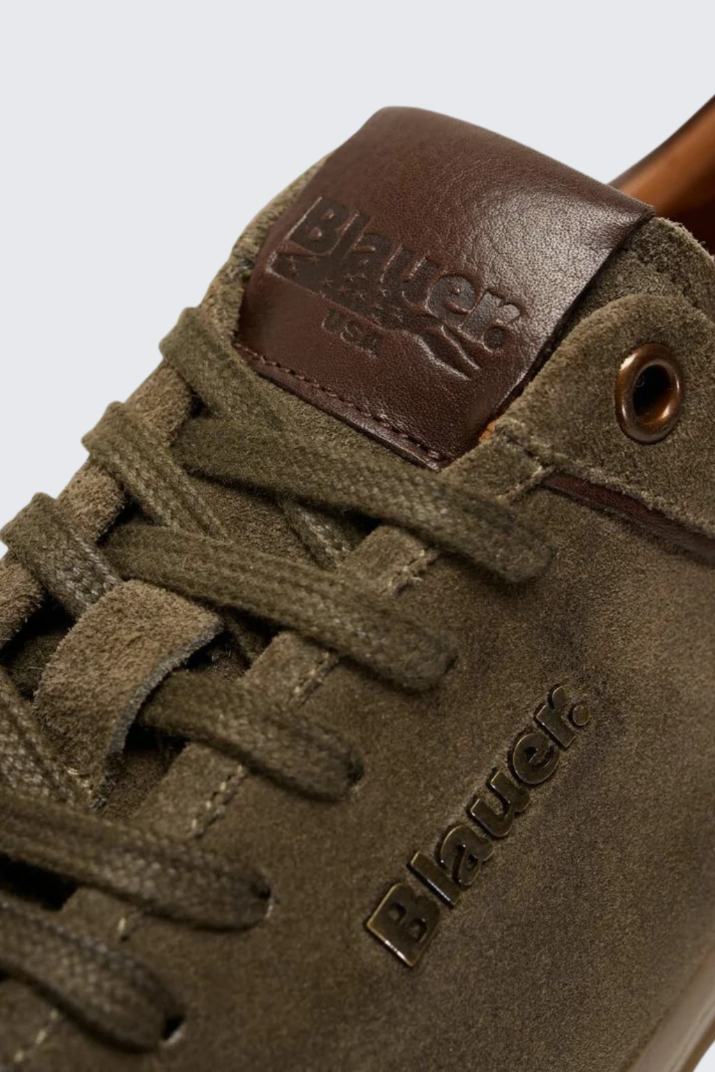 Pánské tenisky značky BLAUER. Model je vyroben z kombinace semiše, přírodní a ekologické kůže. Boty mají vyztuženou patu a kulatou špičku. Zavazování je na ploché tkaničky. Na vnější straně boty je nápis značky BLAUER a na jazyku a patě taktéž.