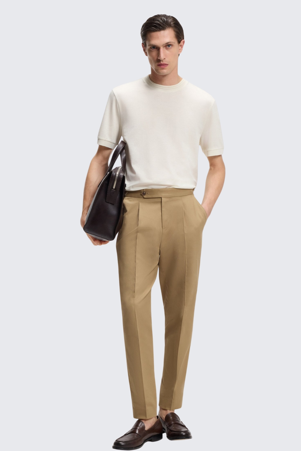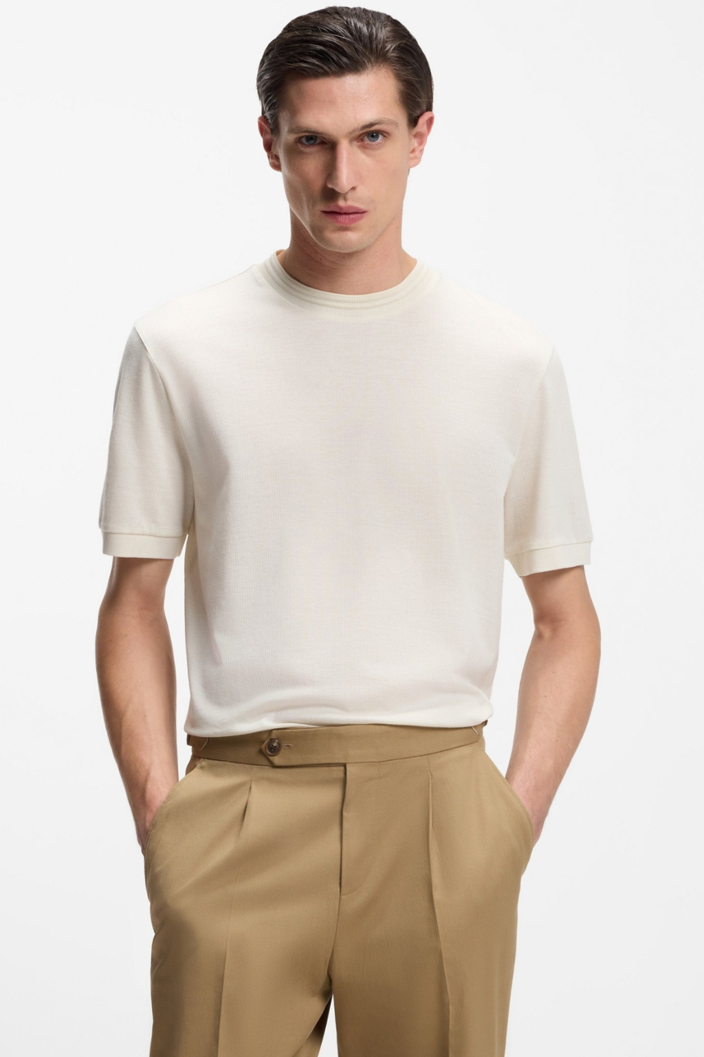 Pánské tričko BOSS Black H-Thompson 70 v krémové barvě.