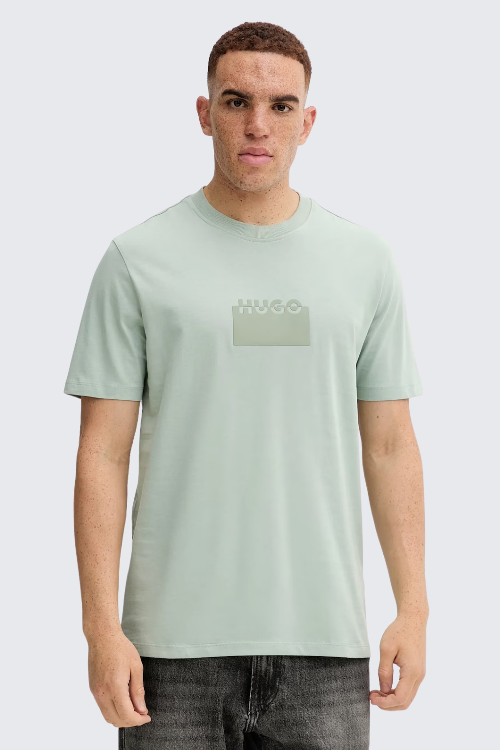 Pánské tričko HUGO Delastio ve světle zelené barvě.