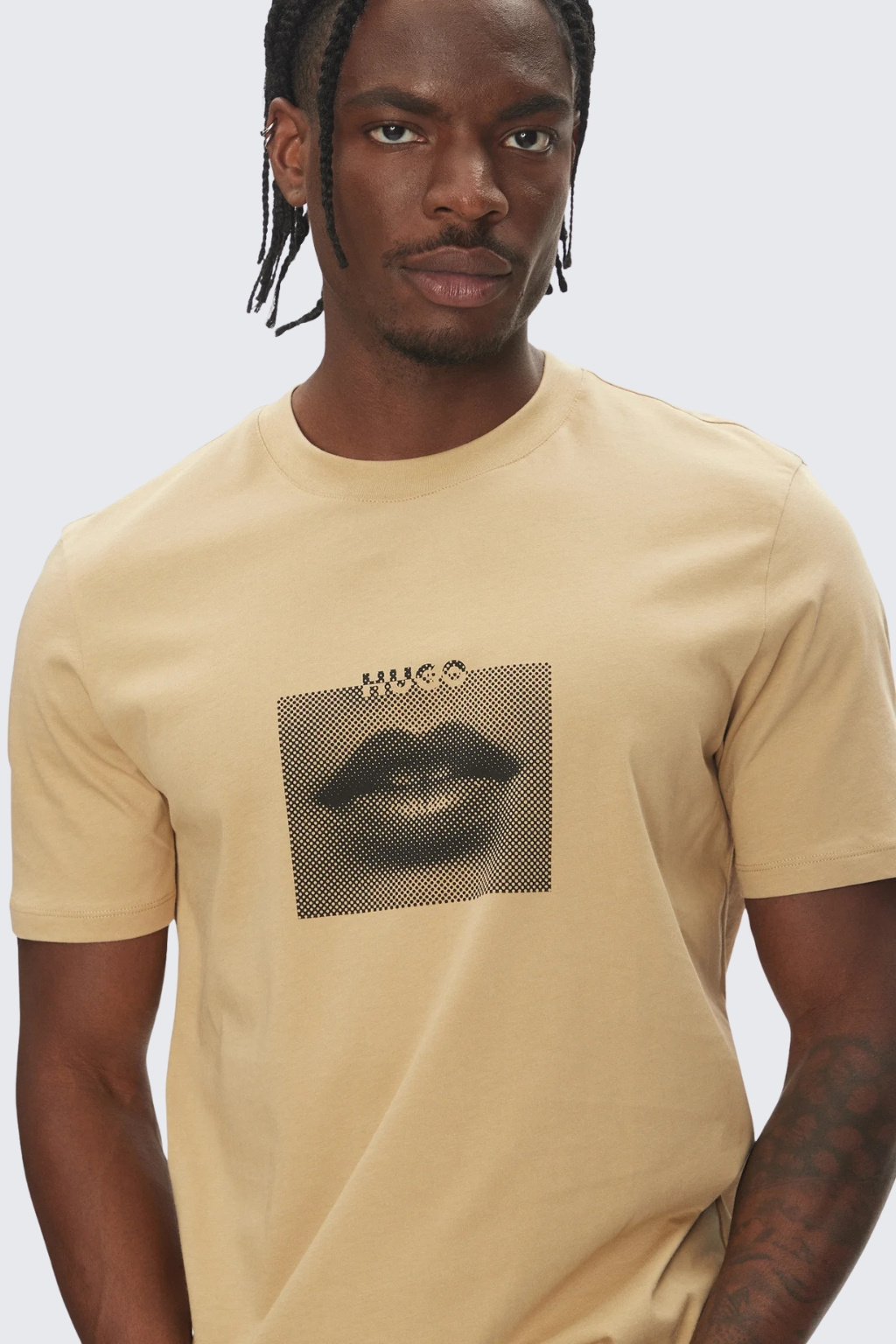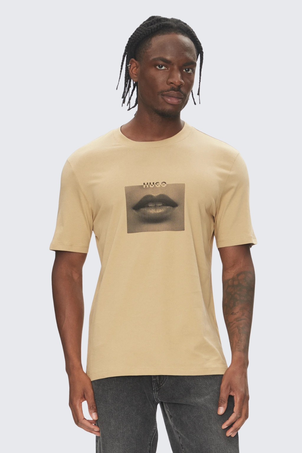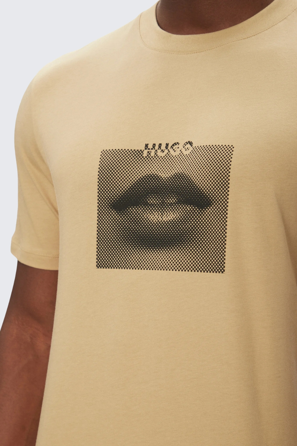 Pánské tričko HUGO Deterni v béžové barvě.