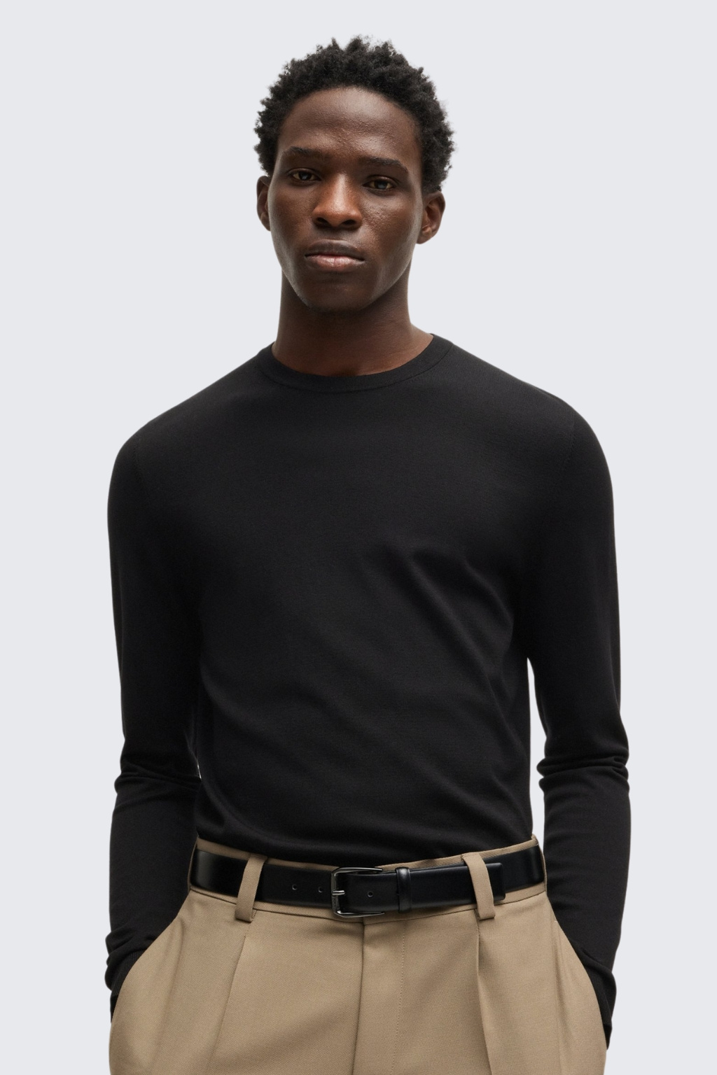 Svetr z kolekce HUGO má vypasovaný střih, standardní délku a dlouhé rukávy. Model je vyroben z jednobarevné látky z extrémně příjemného materiálu s vysokým obsahem viskózy. Model má klasický, kulatý výstřih a spodní lem a konce rukávů jsou zakončeny žebrovanou manžetou.