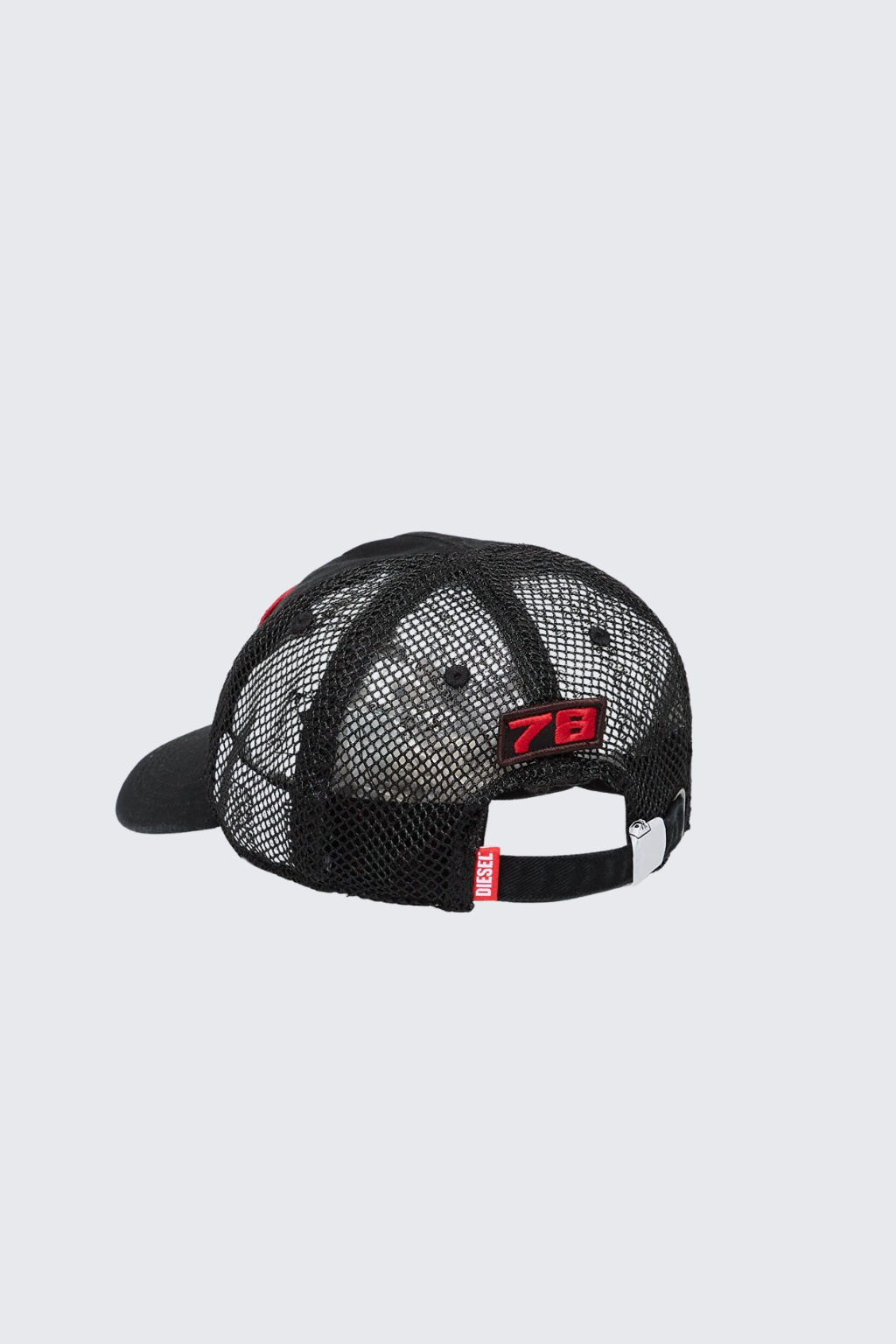 Pánská kšiltovka značky DIESEL má zaoblený kšilt a nastavitelný obvod. Na přední straně je doplněno logo značky DIESEL. Zadní strana kšiltovky je síťovaná a má nášivku 78.
