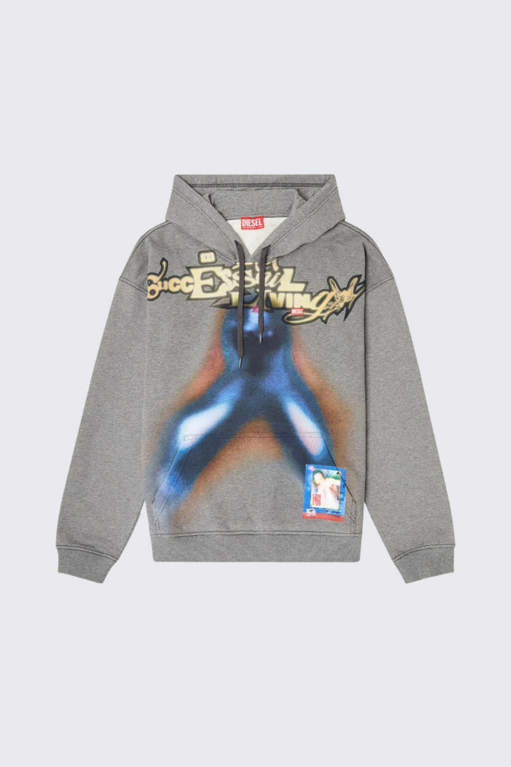 Pánská mikina DIESEL S-BOXT-HOOD-V4 v šedé barvě.