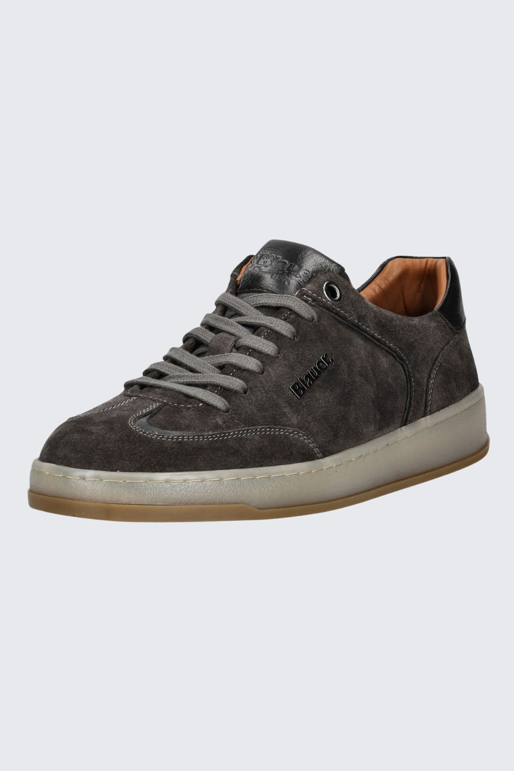 Pánské tenisky značky BLAUER. Model je vyroben z kombinace semiše, přírodní a ekologické kůže. Boty mají vyztuženou patu a kulatou špičku. Zavazování je na ploché tkaničky. Na vnější straně boty je nápis značky BLAUER a na jazyku a patě taktéž.