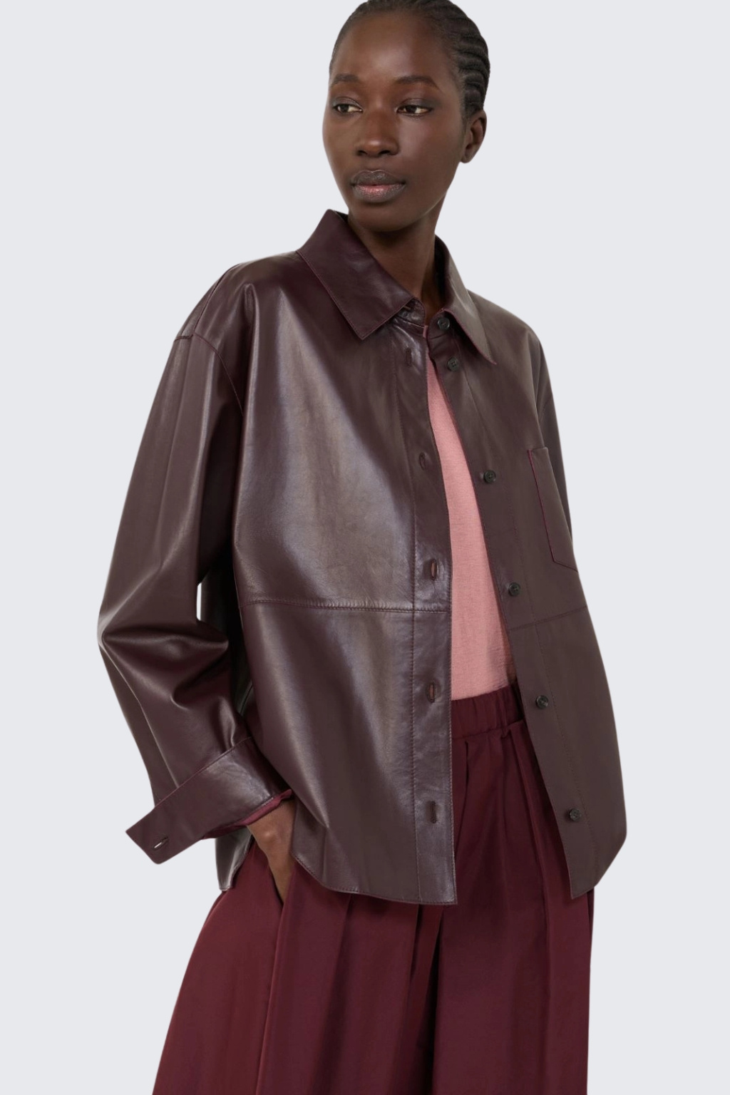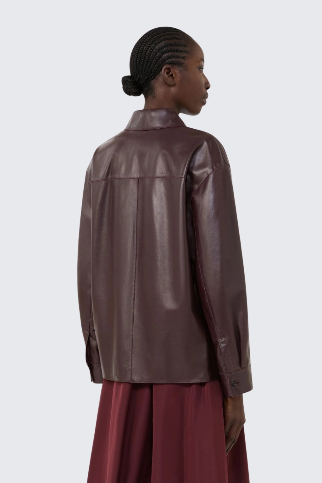 Dámská kožená bunda MaxMara WKDSCATOLA ve vínové barvě.