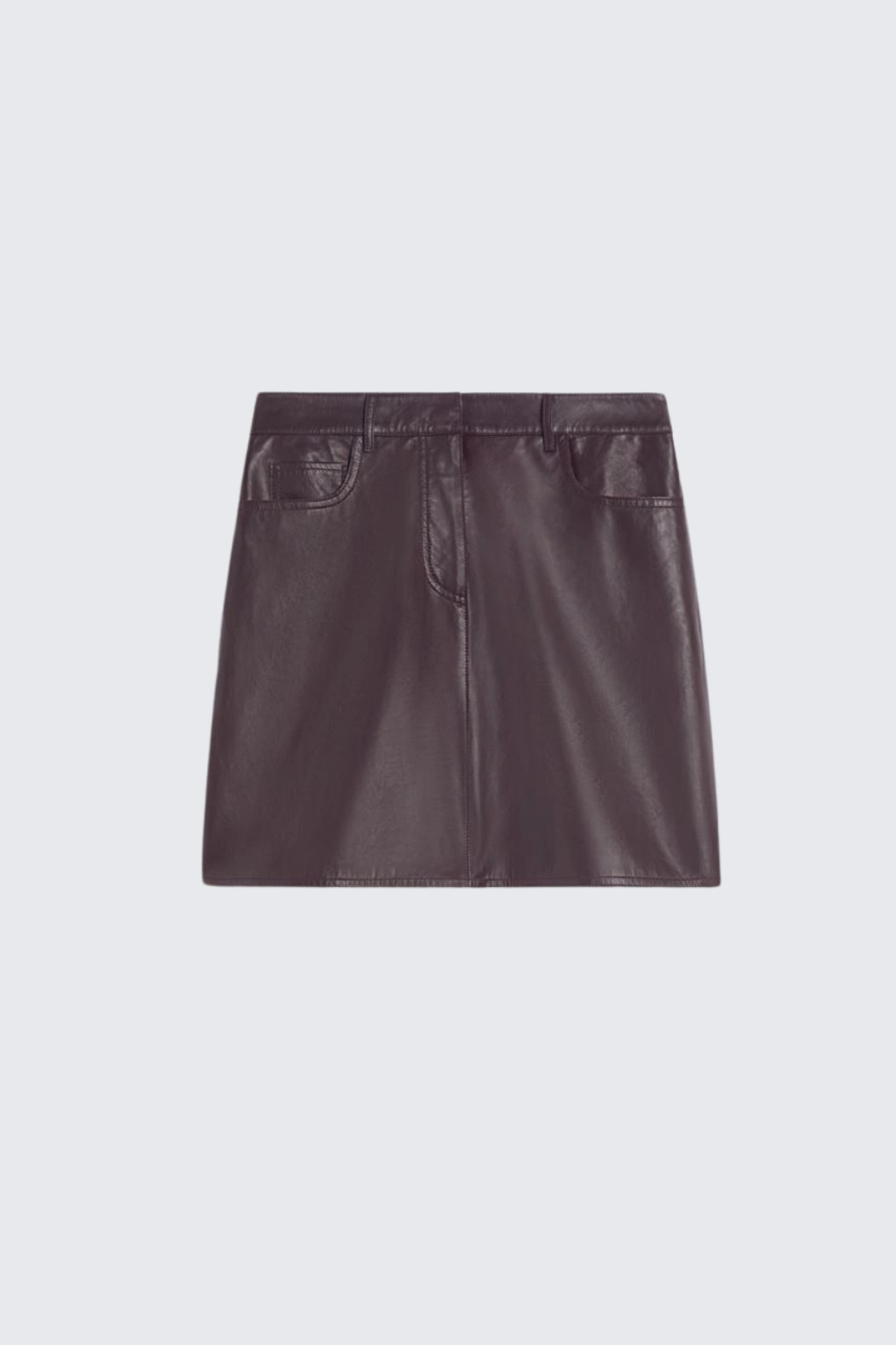 Dámská kožená sukně MaxMara WKDONCIA ve vínové barvě.