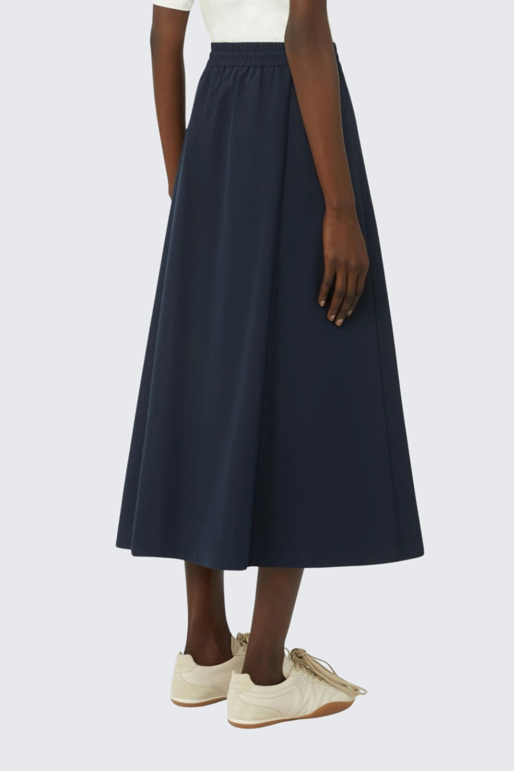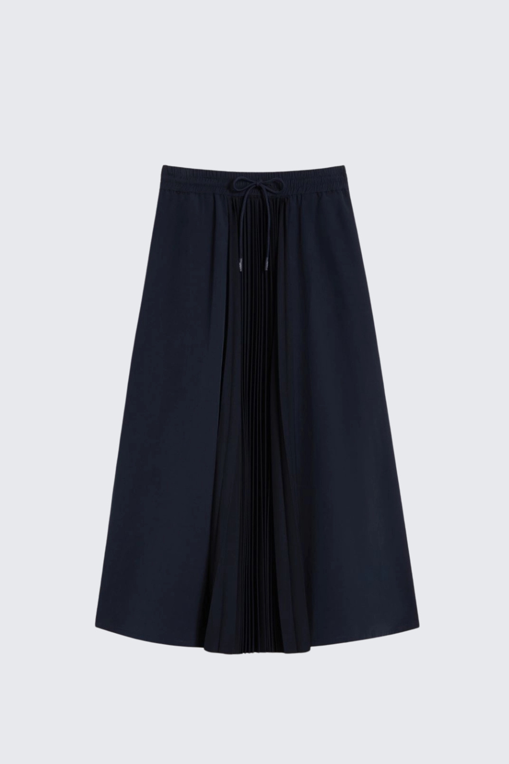Dámská plisovaná sukně značky MaxMara má délku do půli lýtek. Model má vyšší pas s elastickou manžetou a šňůrkou na zavazování. Model má rozšířený střih a po stranách dvě průhmatové kapsy.
