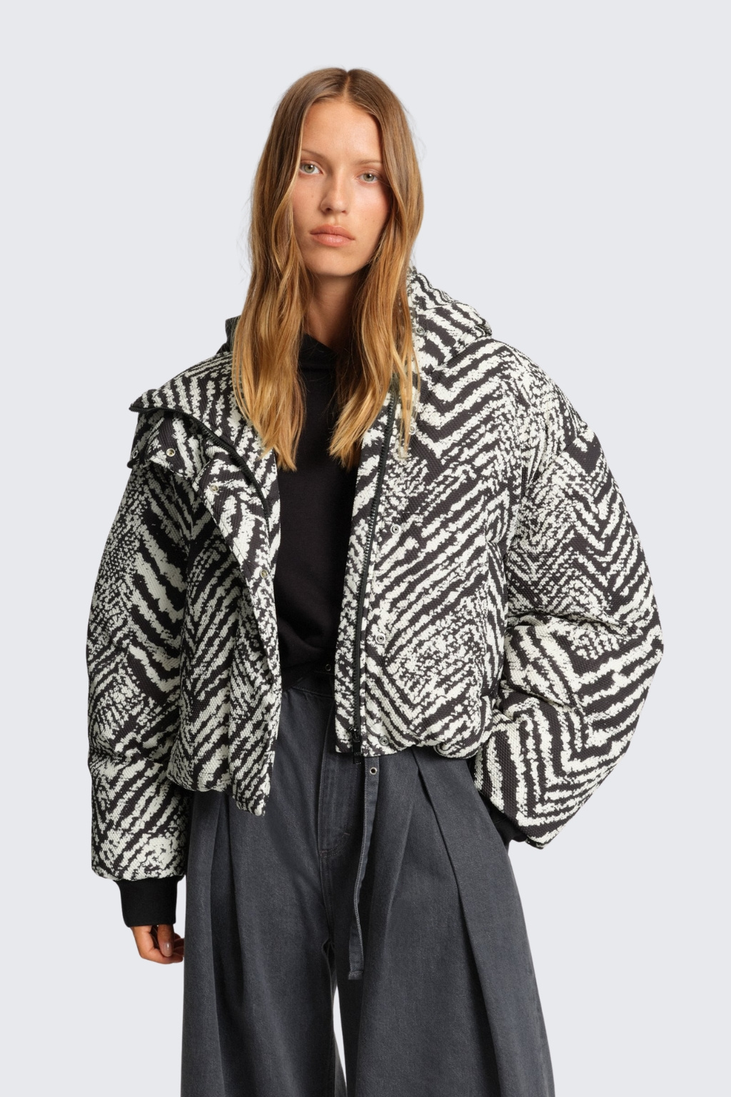 Dámská bunda BOSS Black Paffia2 v černobílé barvě.