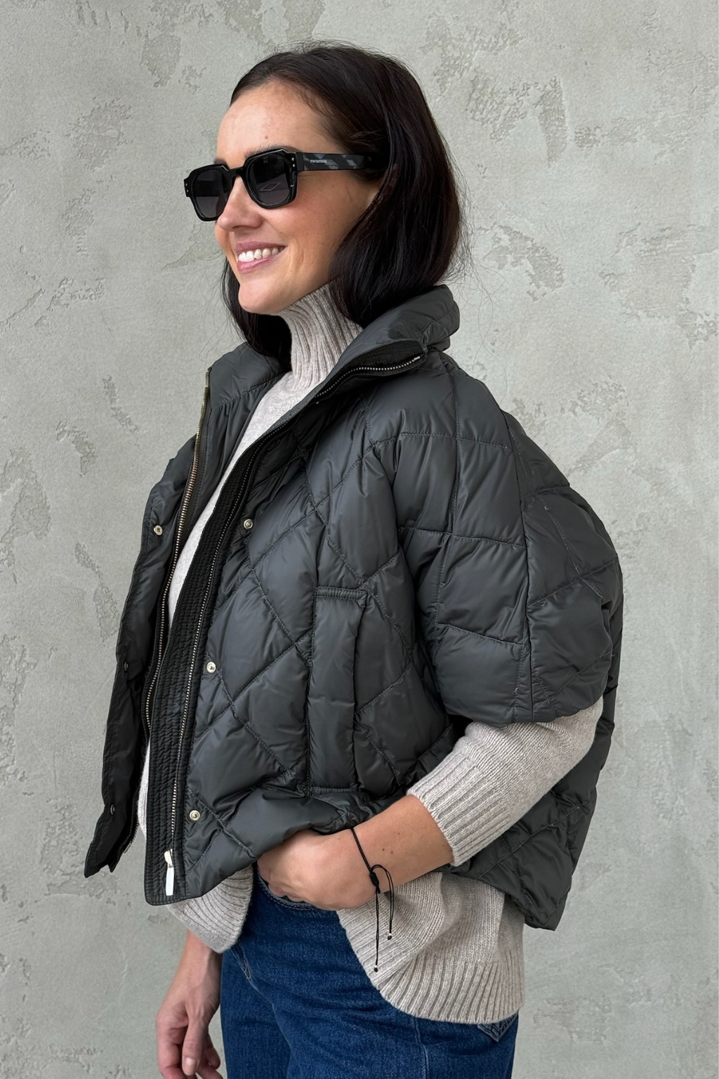 Dámská bunda MaxMara TRESI v šedozelené barvě.
