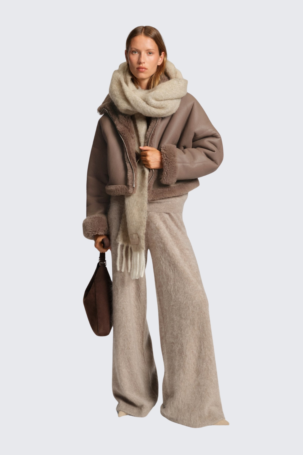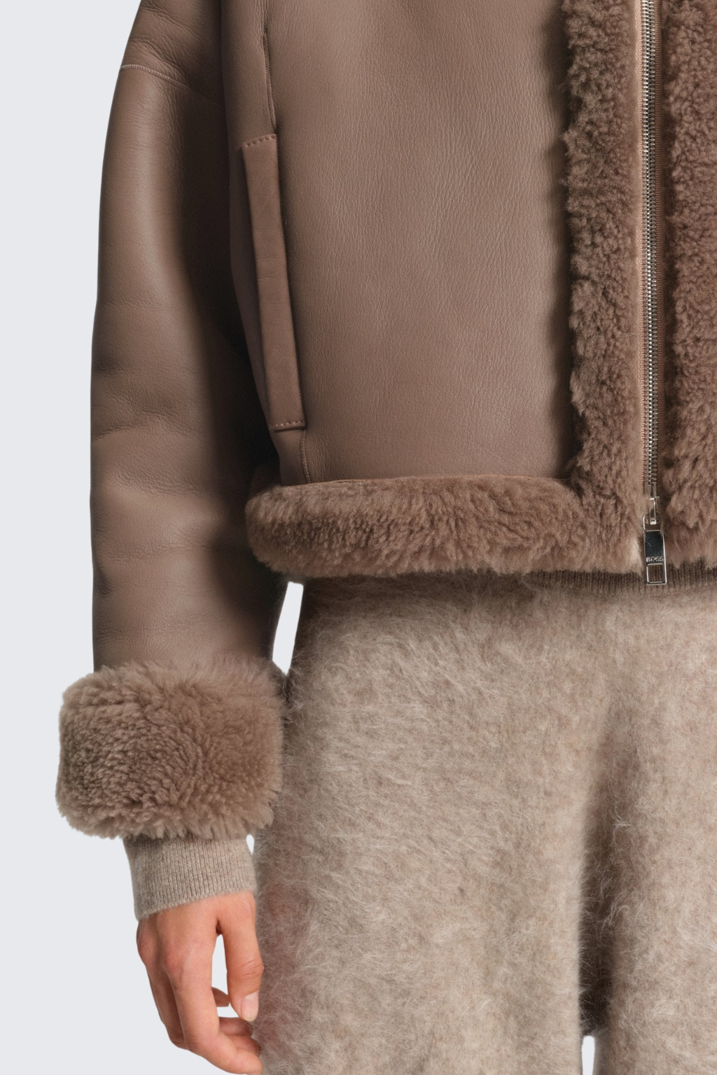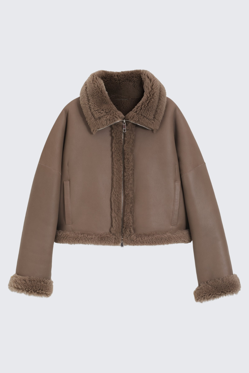 Dámská bunda značky BOSS je vyrobena z kůže a kožešiny. Model má zkrácenou délku a dlouhé rukávy. Bunda má stojatý límec a zapínání po celé své délce na dvoucestný zip. Bunda má kožešinové detaily, po stranách průhmatové kapsy a sníženou linii ramen.