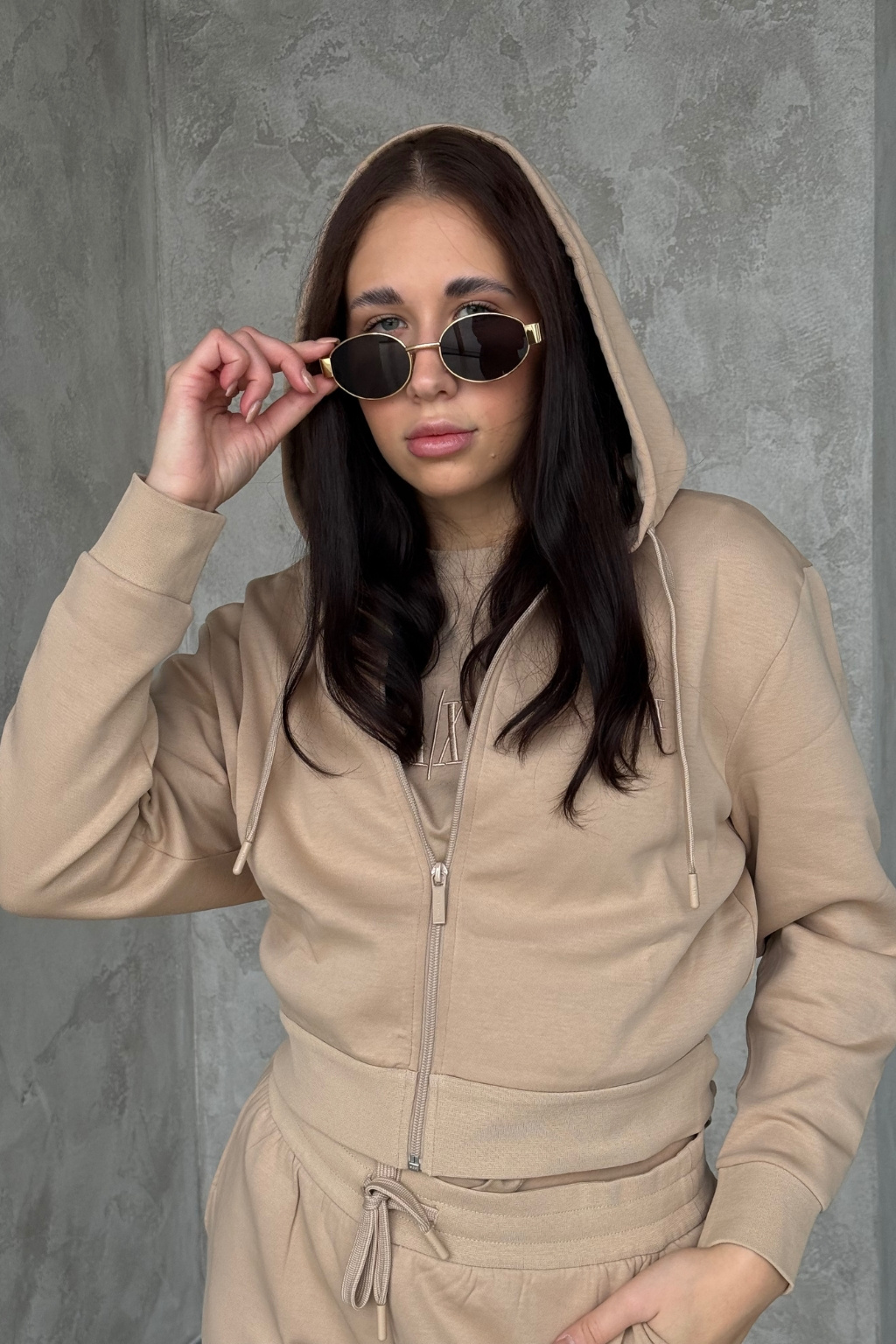 Dámská mikina značky Armani Exchange je zkrácené délky s dlouhými rukávy a se sníženou linií ramen. Model má volnější střih a má vespod a na koncích rukávů žebrované manžety. Mikina má kapuci a u krku stahovací šňůrku. Mikina je vyrobena z příjemného materiálu a má na přední straně malé logo značky AX. Zapínání je po celé délce na zip.