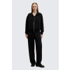 Dámská mikina značky HUGO je vyrobena z tenké, elastické tkaniny. Má volný střih, dlouhé rukávy a zkrácenou délku. Vespod a na koncích rukávů je elastická manžeta. Rukávy mají sníženou linii ramen a u krku je zvýšený límec. Zapínání je na zip, na kterém je doplněno logo značky HUGO a po stranách jsou dvě šikmé průhmatové kapsy.