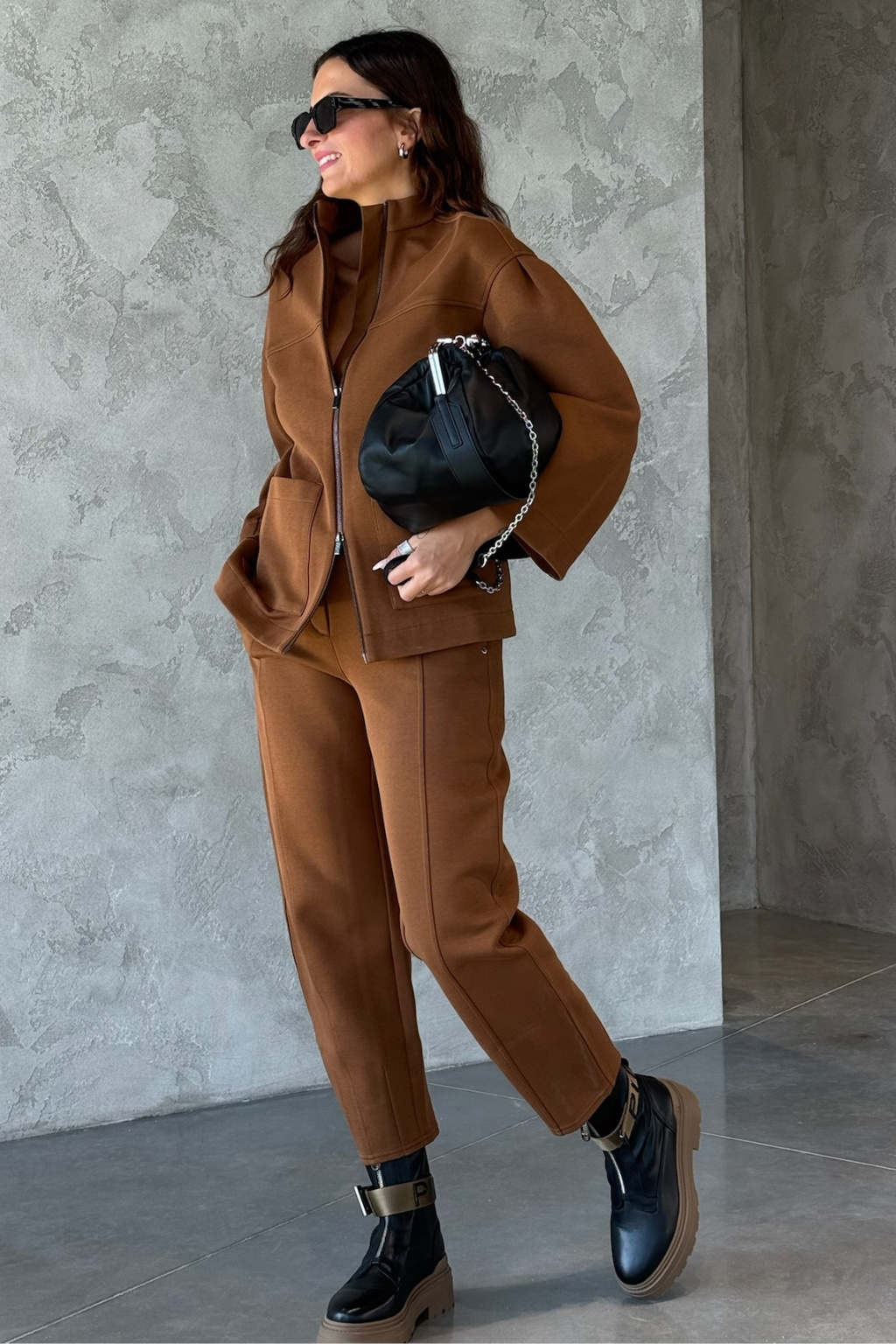 Dámská mikina značky MaxMara má standardní délku, dlouhé rukávy se sníženou linií ramen a stojáček. Model má zapínání na dvoucestný zip a na přední straně dvě kapsy.