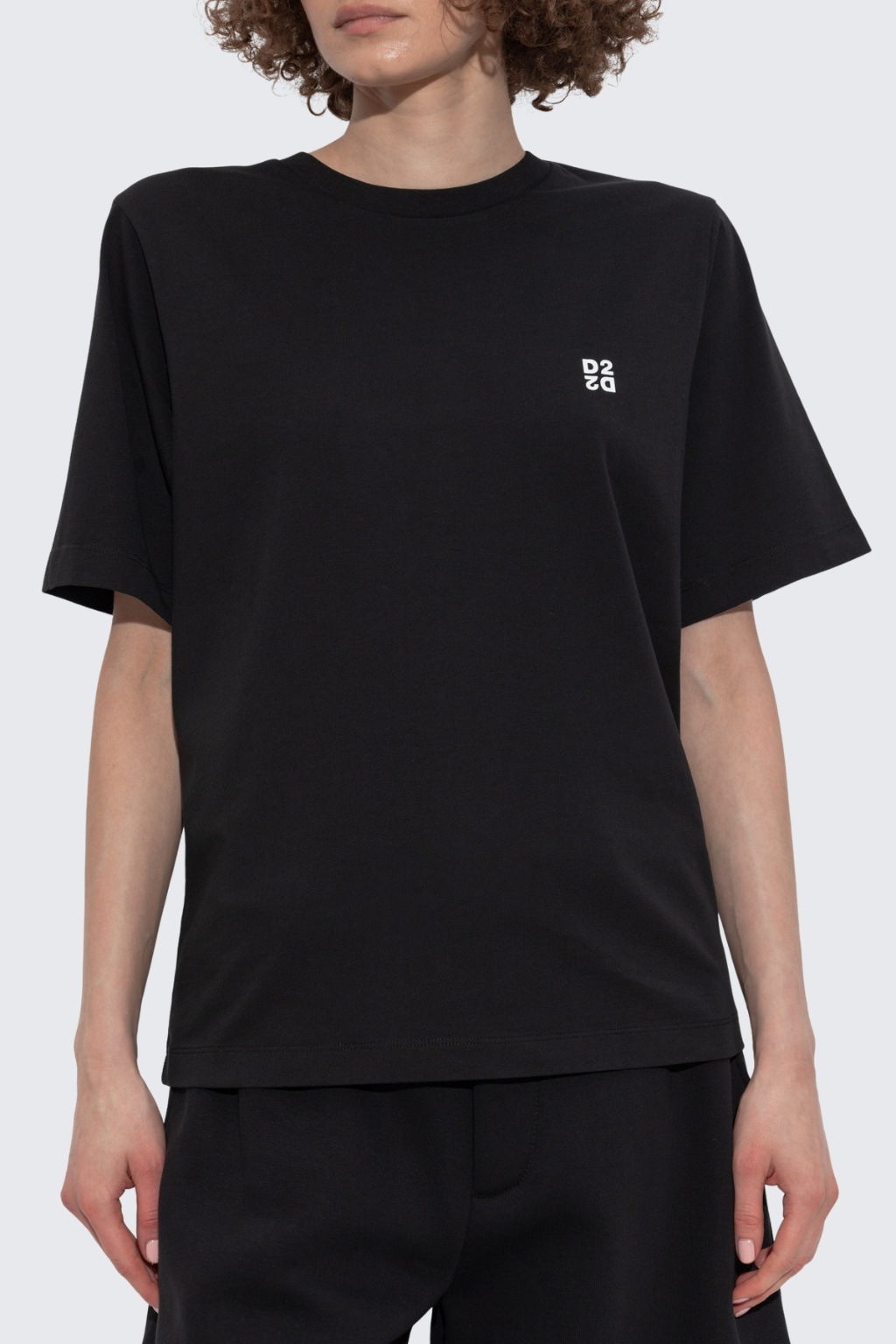 Dámská sada triček značky DSQUARED2. Tričko je vyrobeno z bavlněného materiálu. Model má rovný střih s krátkým rukávem a standardní délky. Model má na hrudi vlevo kontrastní nápis značky DSQUARED2. U krku je klasický, kulatý výstřih.