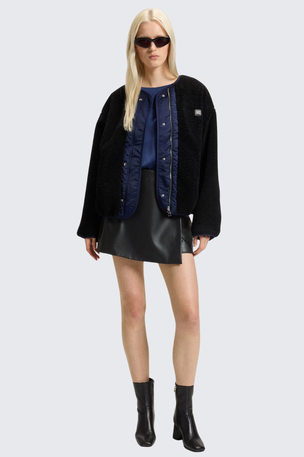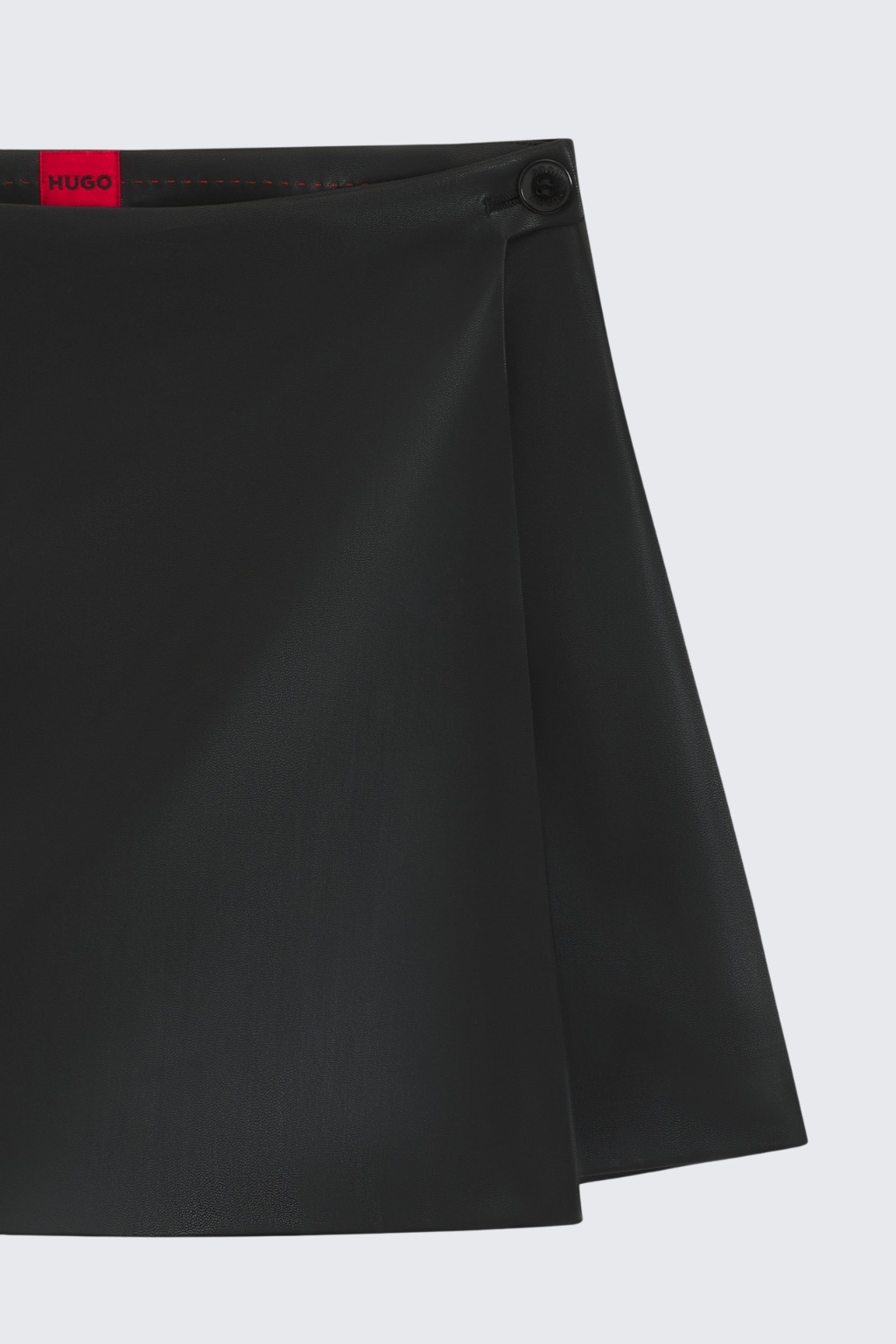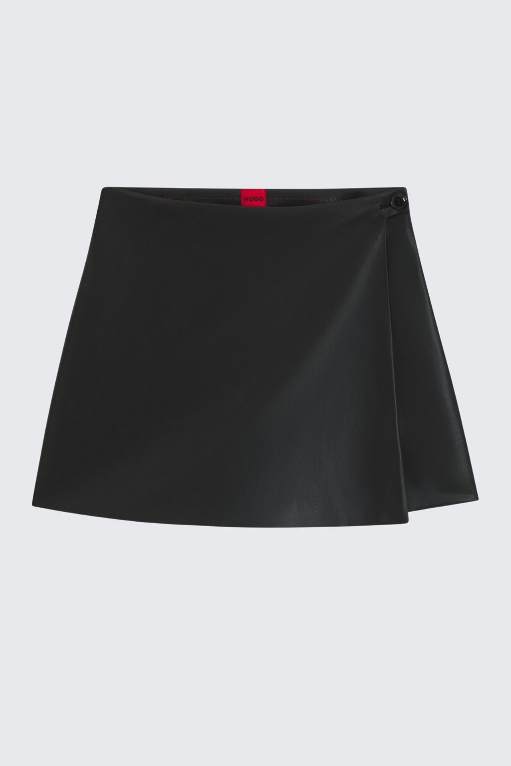 Dámské mini kraťasy značky HUGO jsou vyrobeny z imitace kůže. Model má zavinovací sukýnku a na straně je knoflík. Zapínání je na zip a na zadní straně je imitace kapsy.
