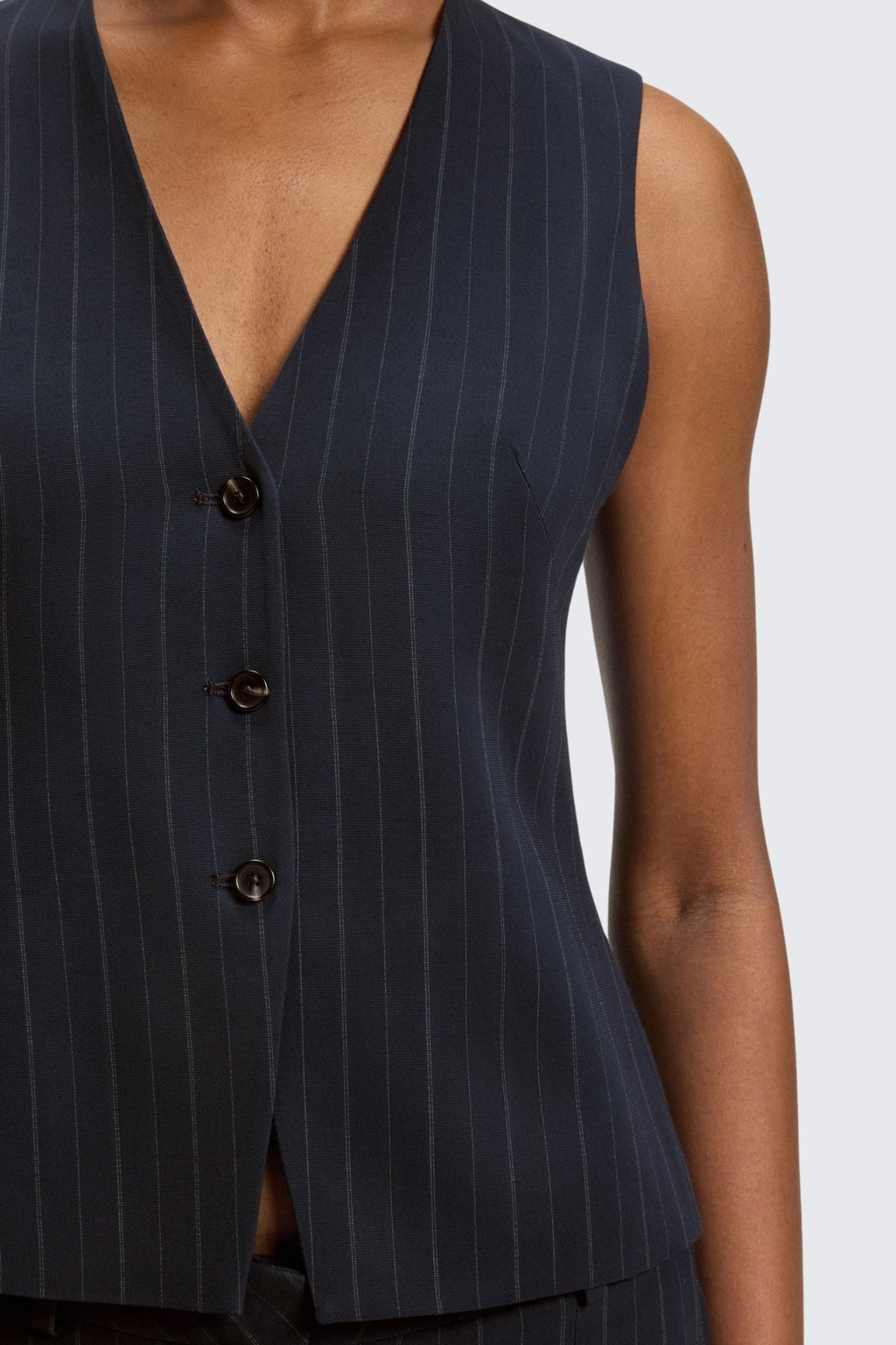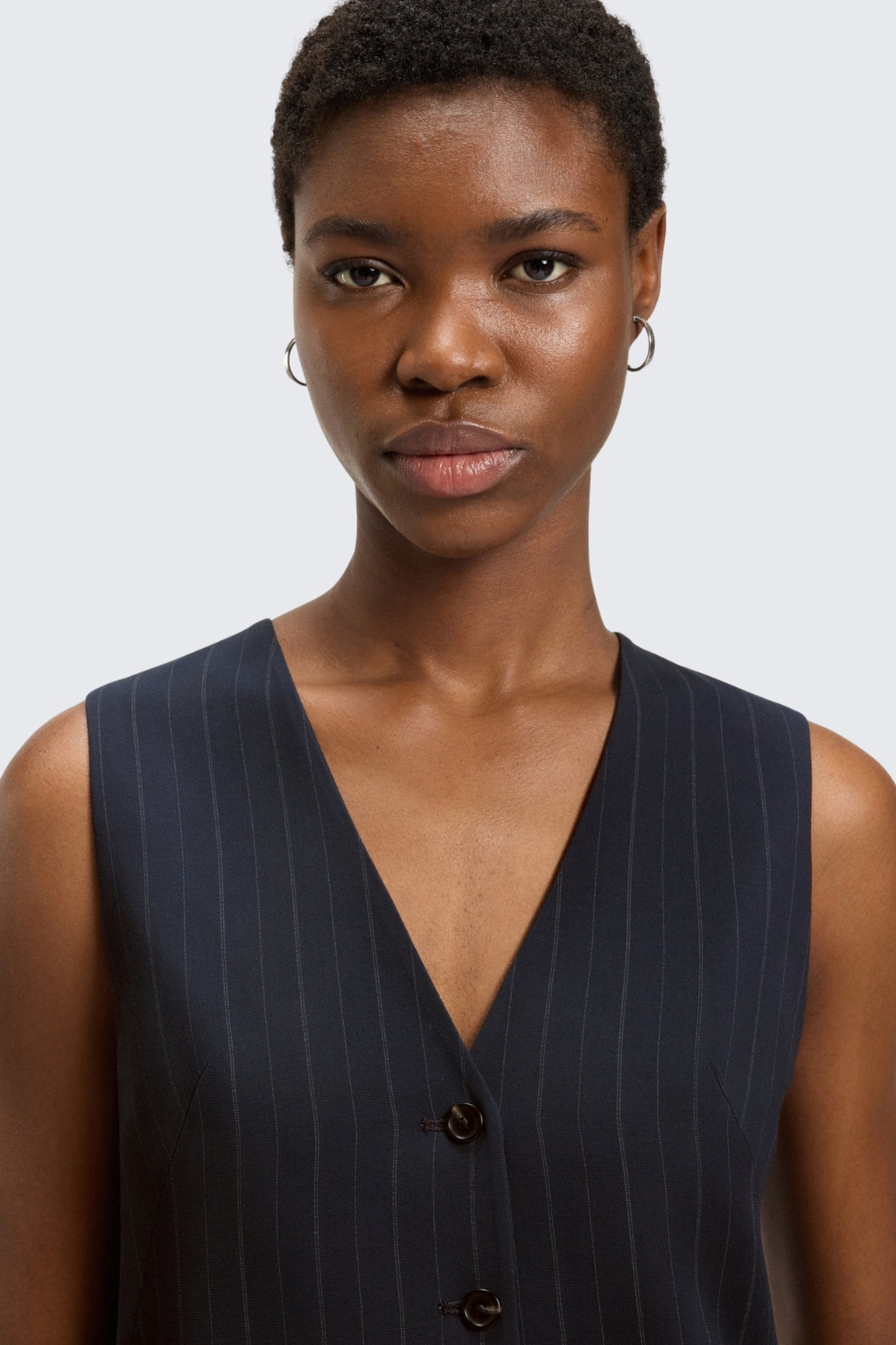 Dámská vesta BOSS Black Julinia v tmavě modré barvě.