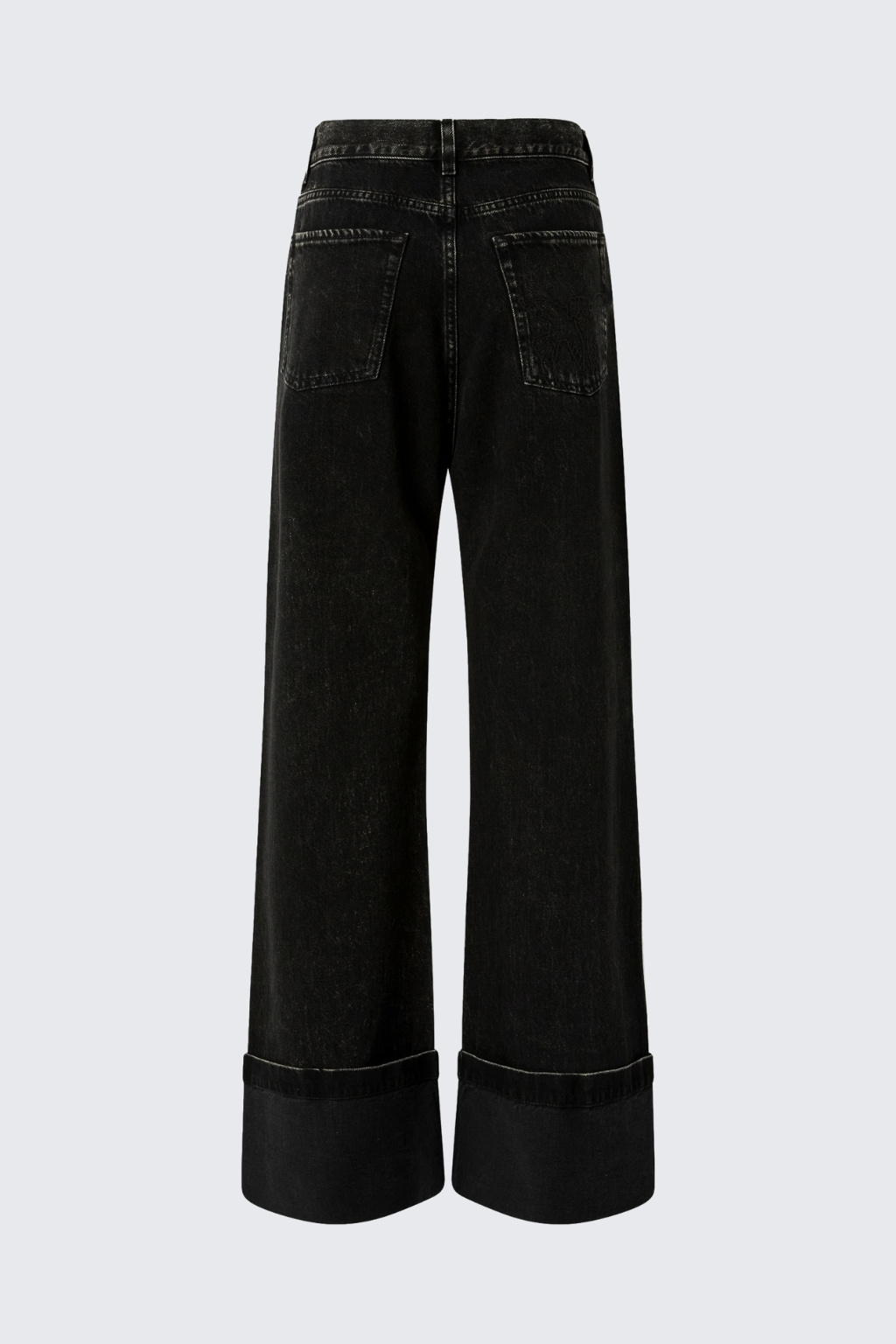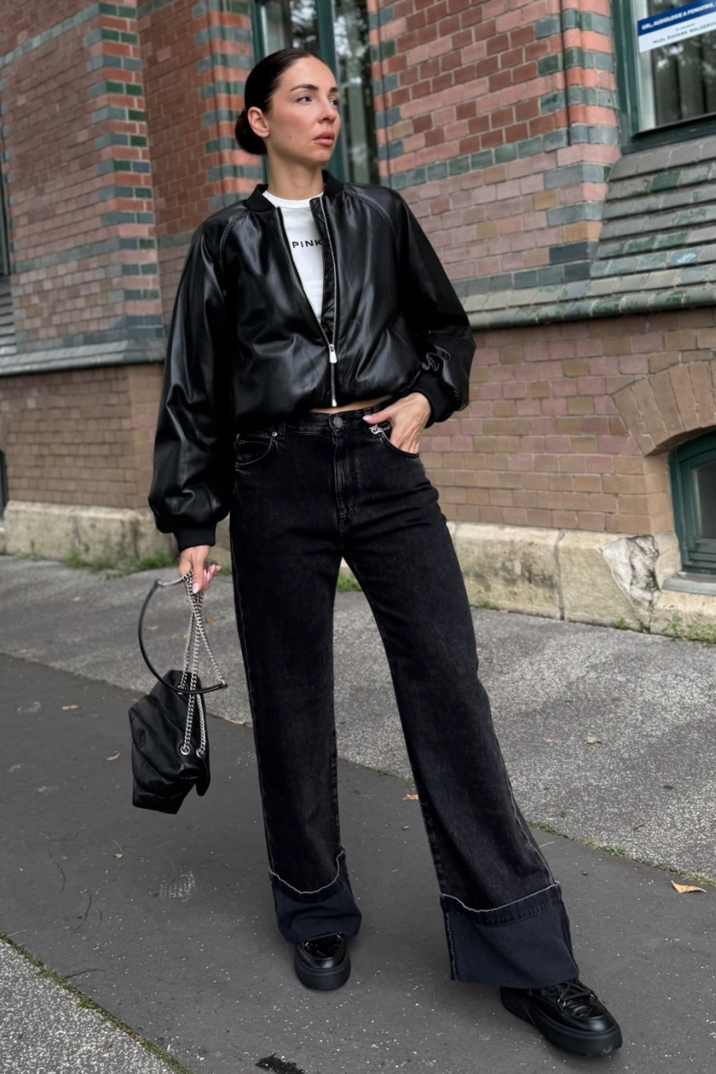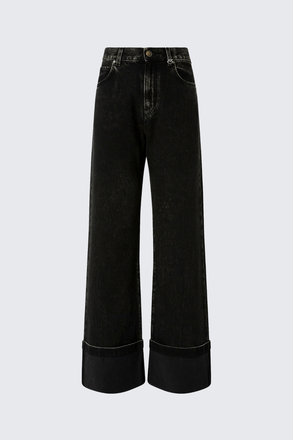 Dámské džíny PINKO WANDA WIDE LEG TURN-UP v černé barvě.