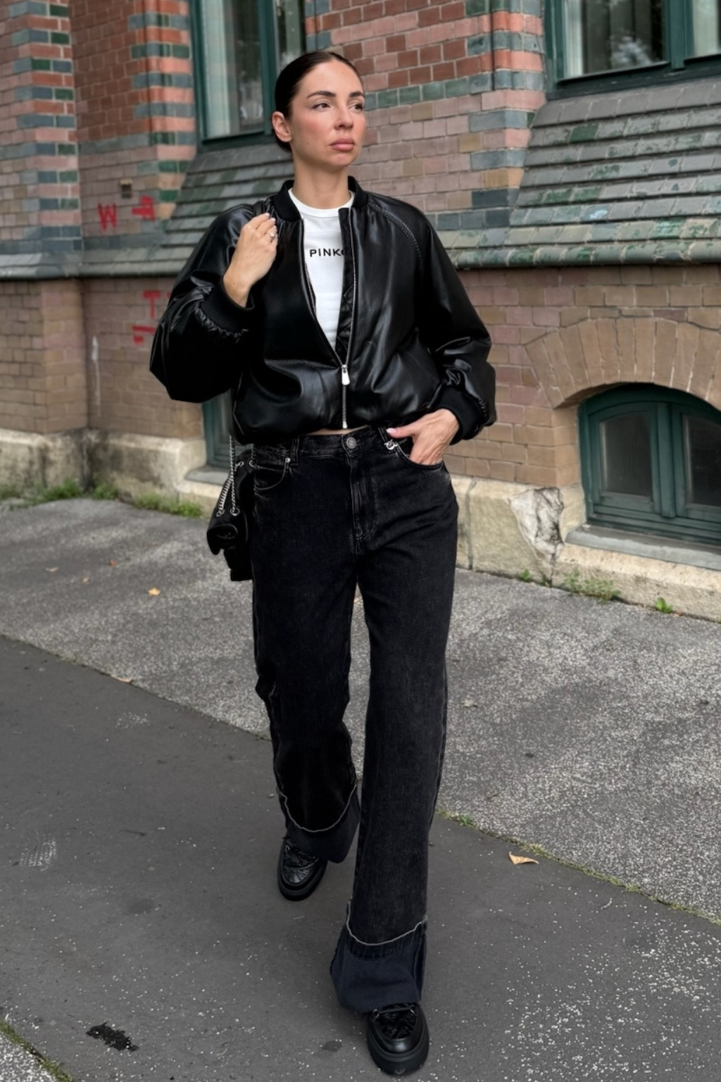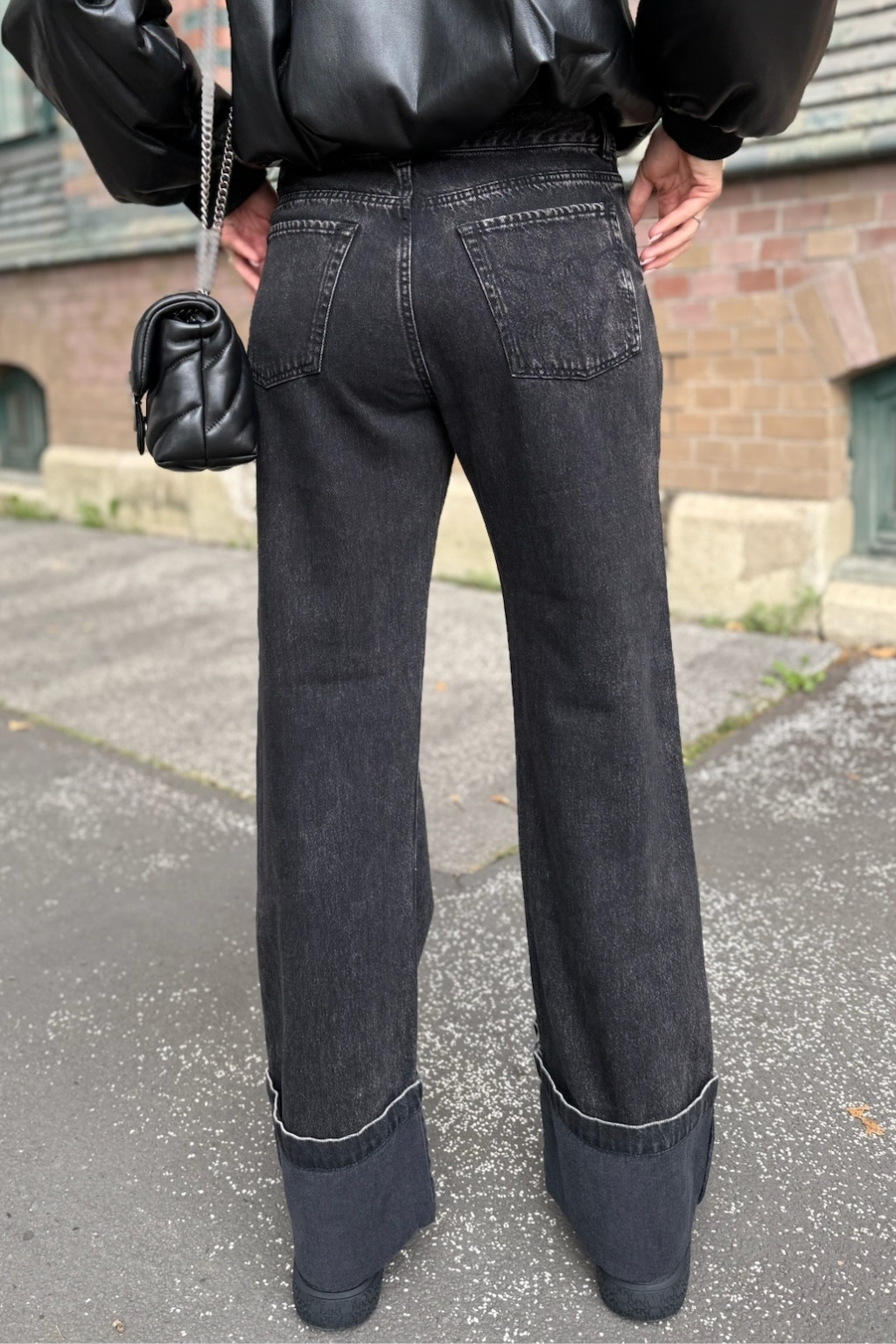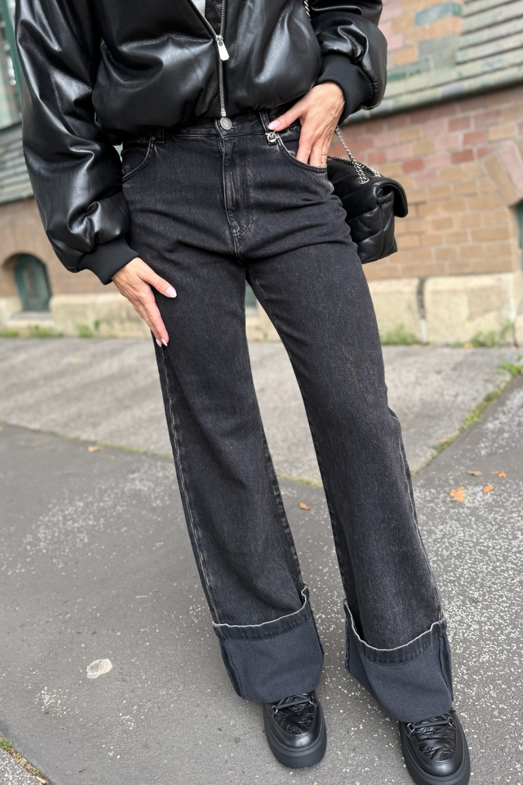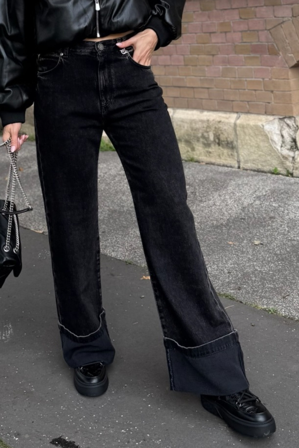 Dámské džíny PINKO WANDA WIDE LEG TURN-UP v černé barvě.