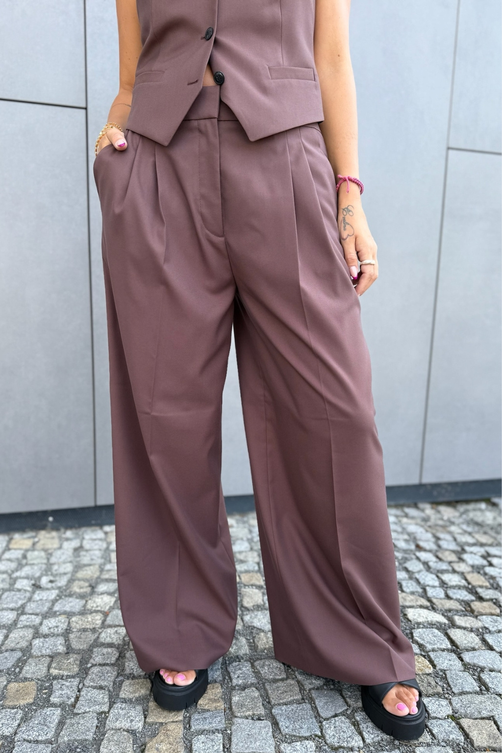 Dámské kalhoty HUGO Horesa v hnědé barvě.