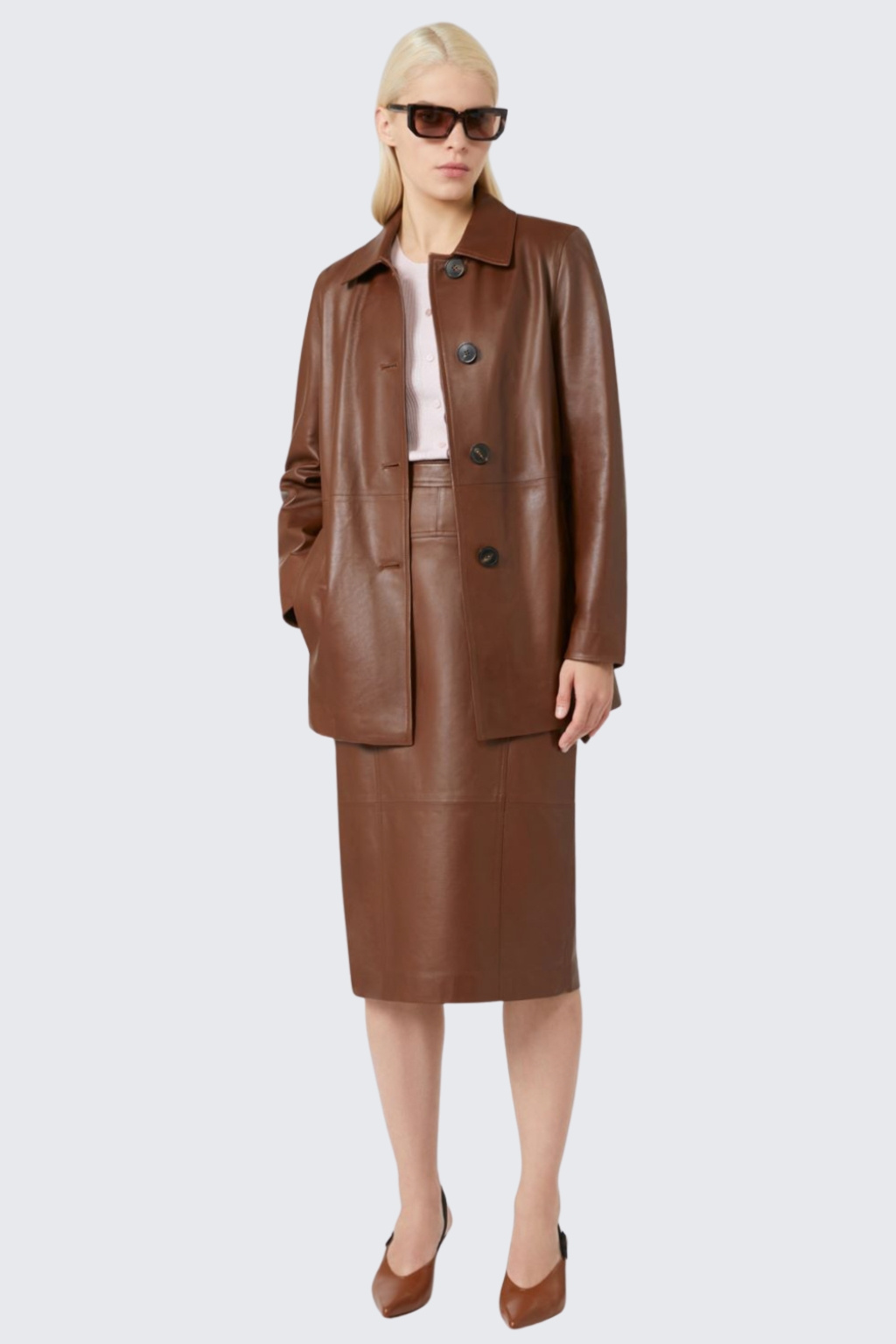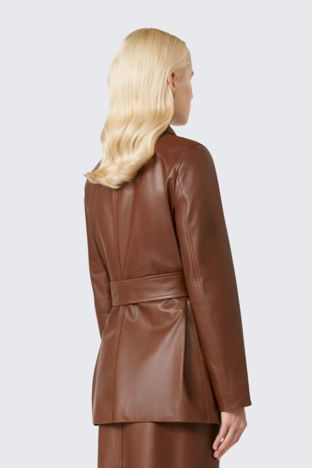Dámské kožené sako MaxMara TOLMIN v hnědé barvě.