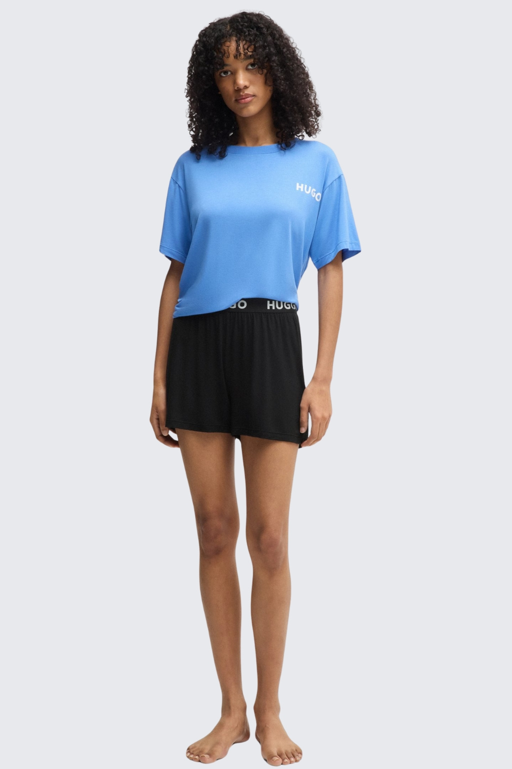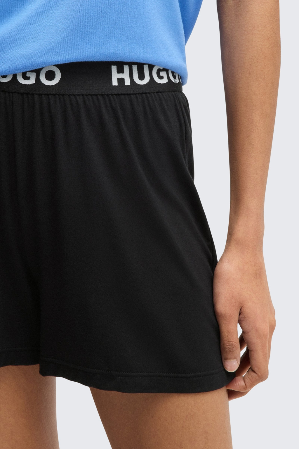 Dámské pyžamové kraťasy značky HUGO jsou vyrobeny z elastického, měkkého úpletu. Model má volný střih a elastickou gumu v pase, na které je doplněno logo značky HUGO.