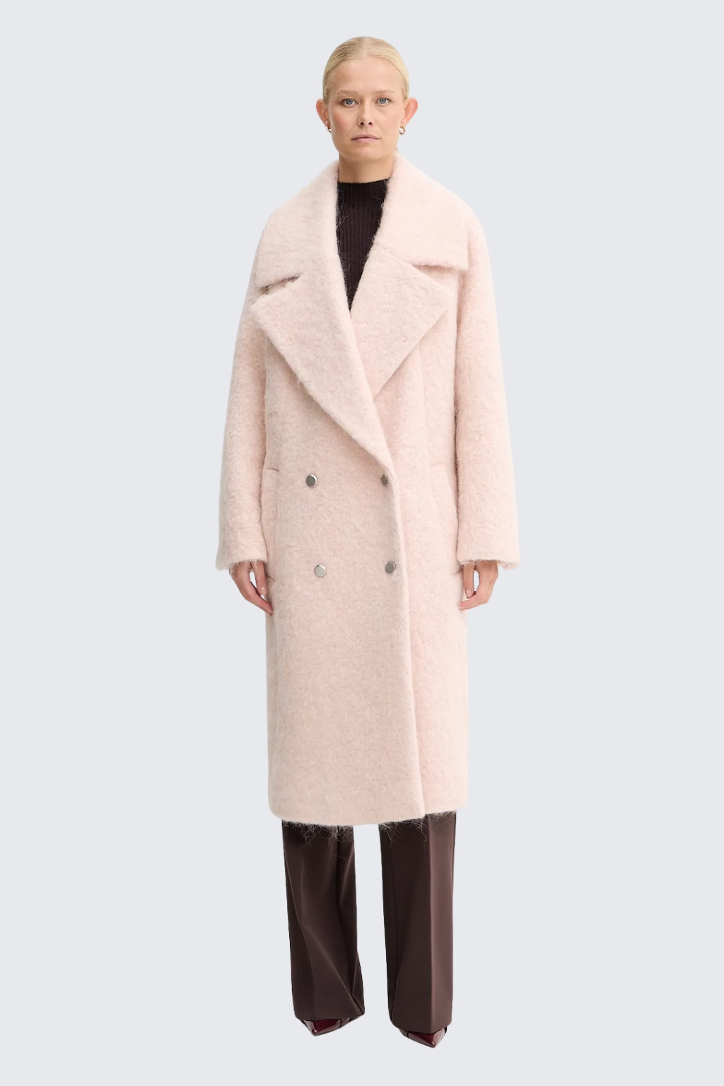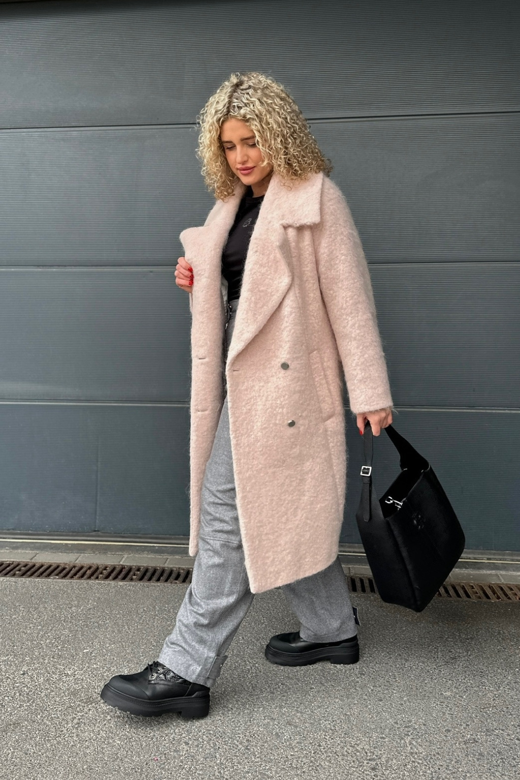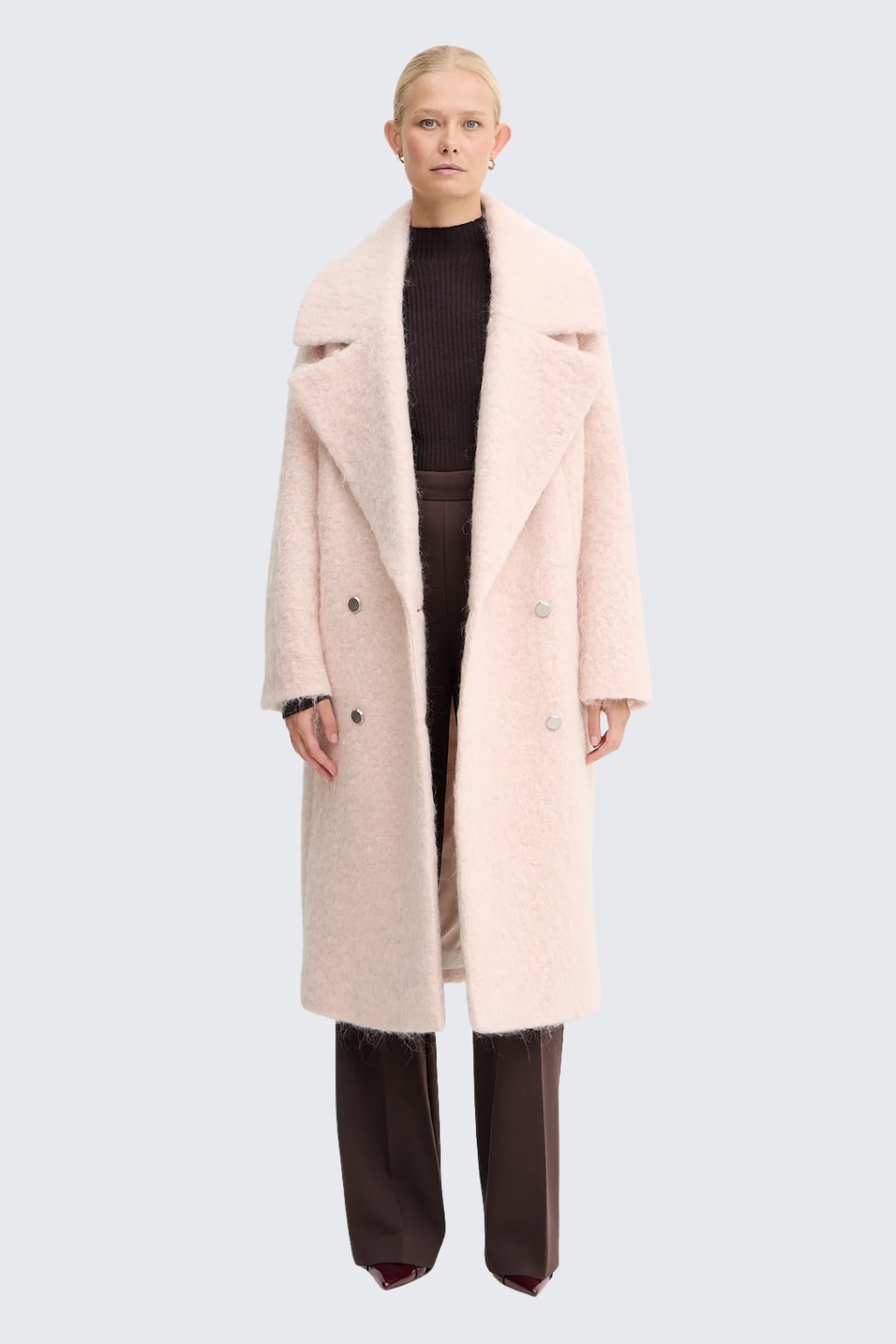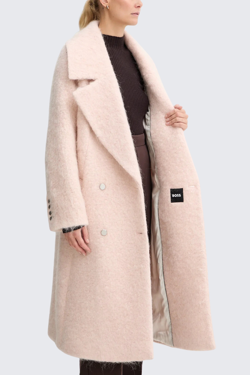 Dámský kabát BOSS Black Crestin ve světle růžové barvě.