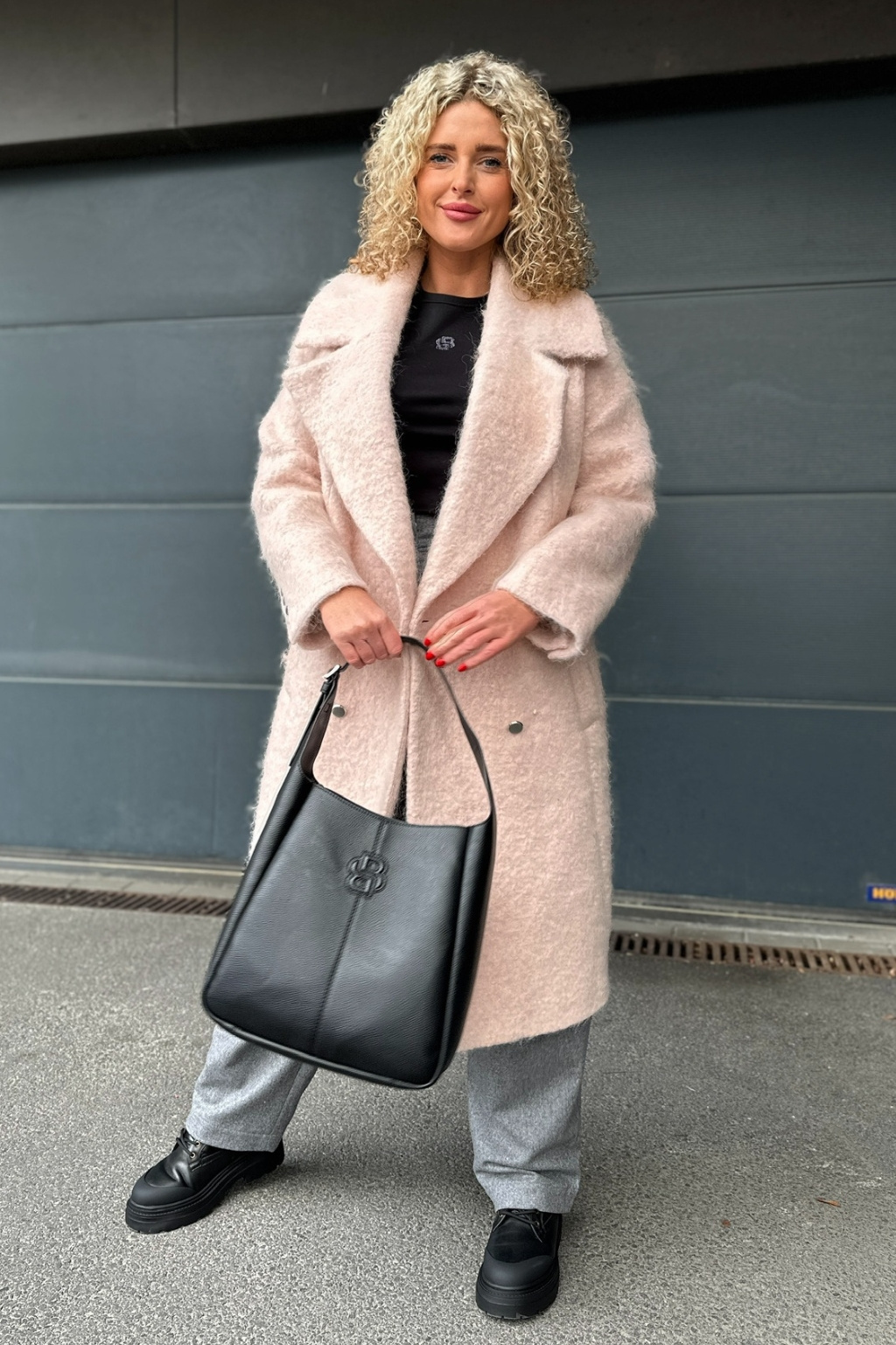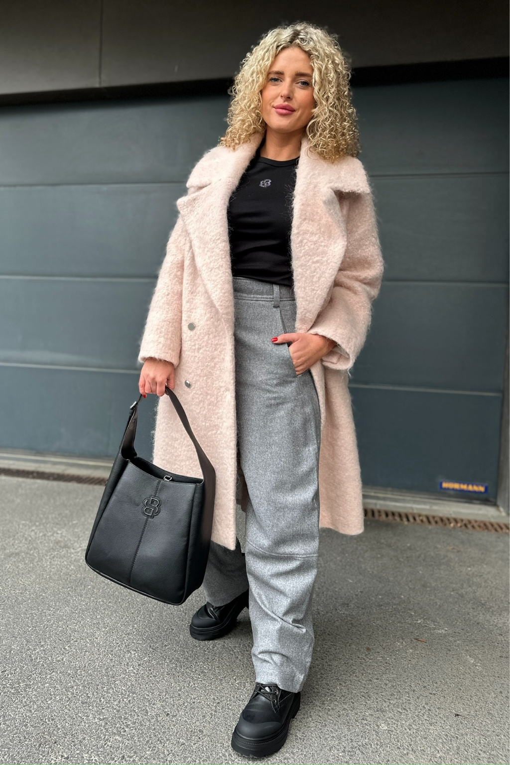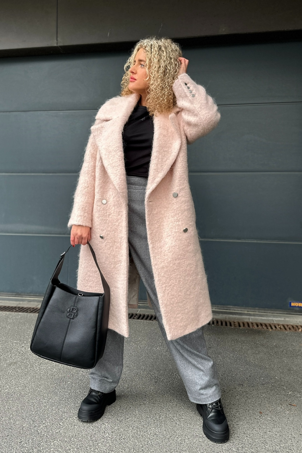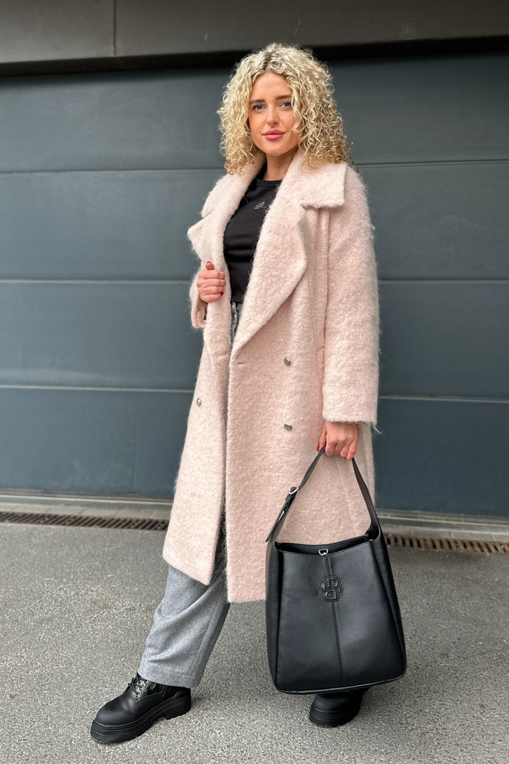 Dámský kabát BOSS Black Crestin ve světle růžové barvě.