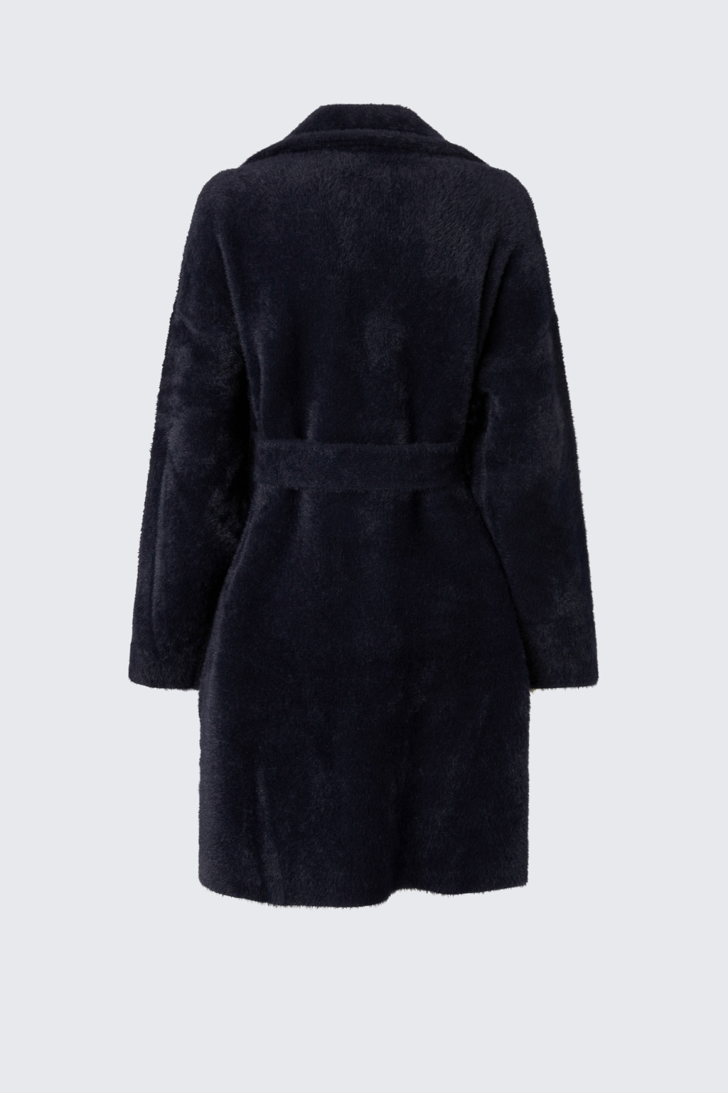 Dámský kabát značky PINKO má volný střih s odnímatelným páskem v pase na zavazování. Model má zapínání na knoflíky, špičaté klopy a dlouhé rukávy. Kabát má střední délku a po stranách dvě šikmé kapsy na knoflíky. Model má boční rozparky.