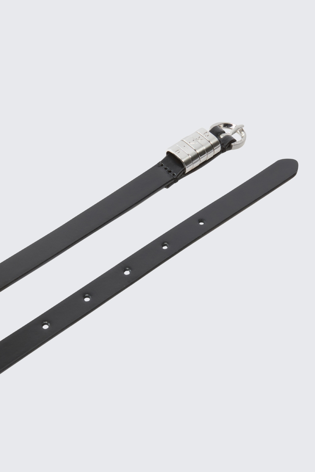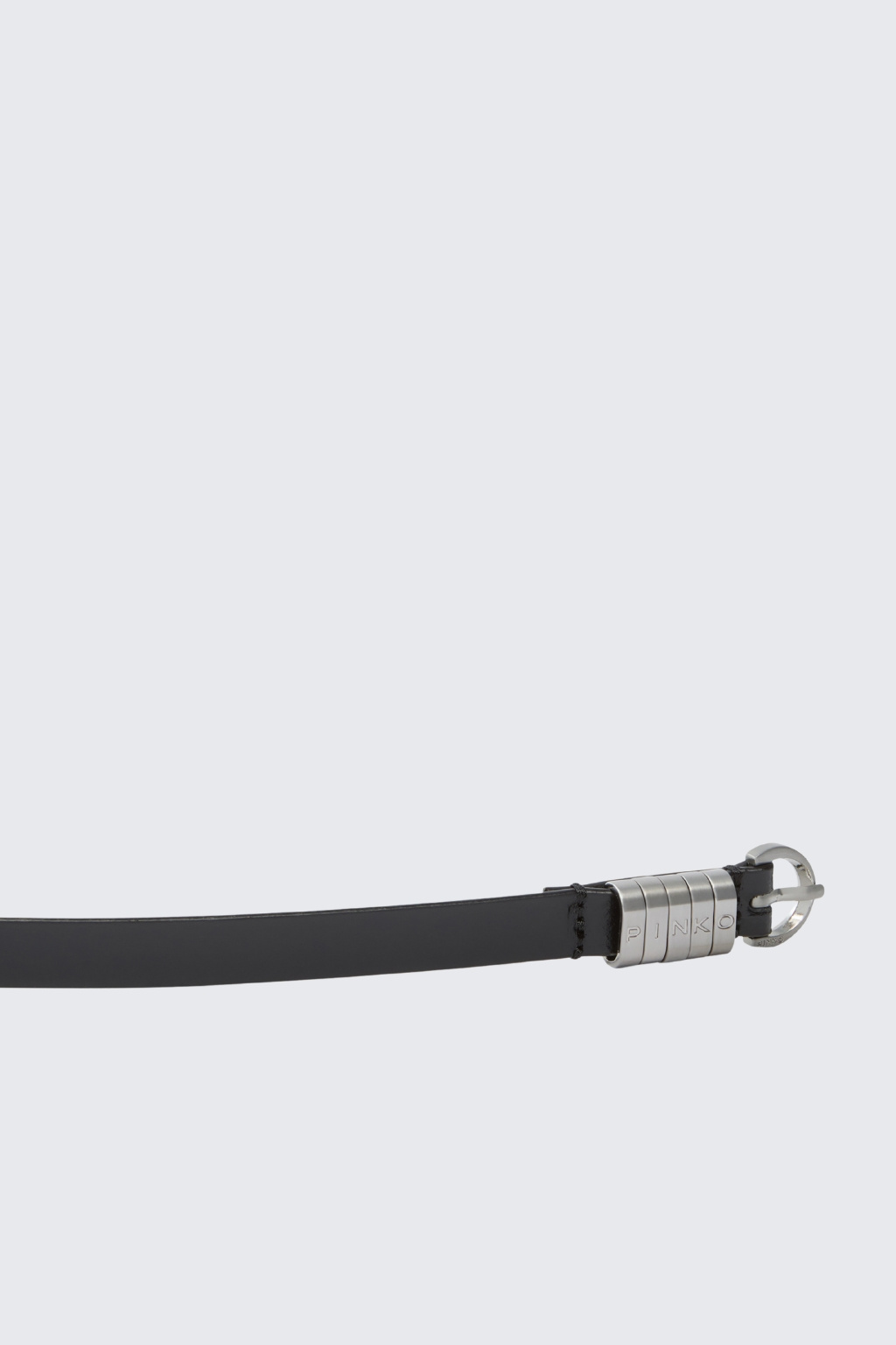 Dámský opasek značky PINKO je široký 1,2 cm a je vyroben z měkké leštěné kůže. Model má stříbrnou přezku s nastavitelnou délkou a postříbřené kovové detaily s nápisem značky PINKO.