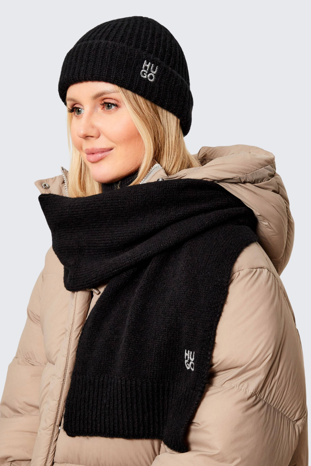 Dámský set čepice a šála HUGO Sarmi_Set v černé barvě.