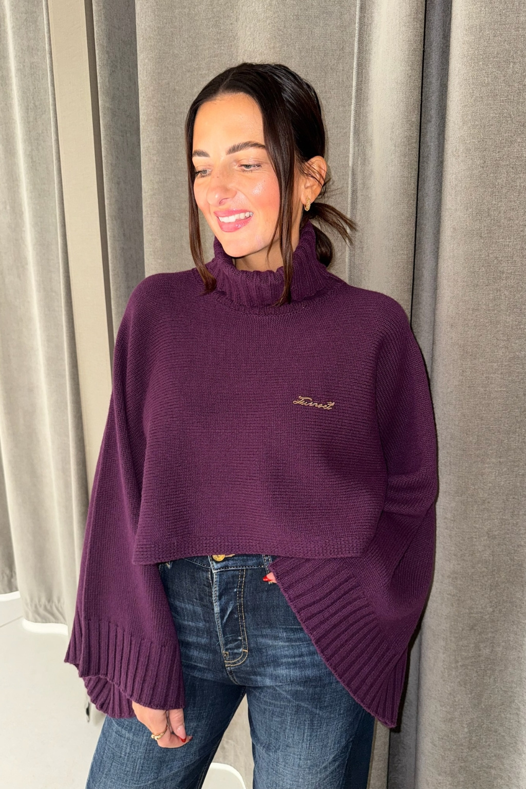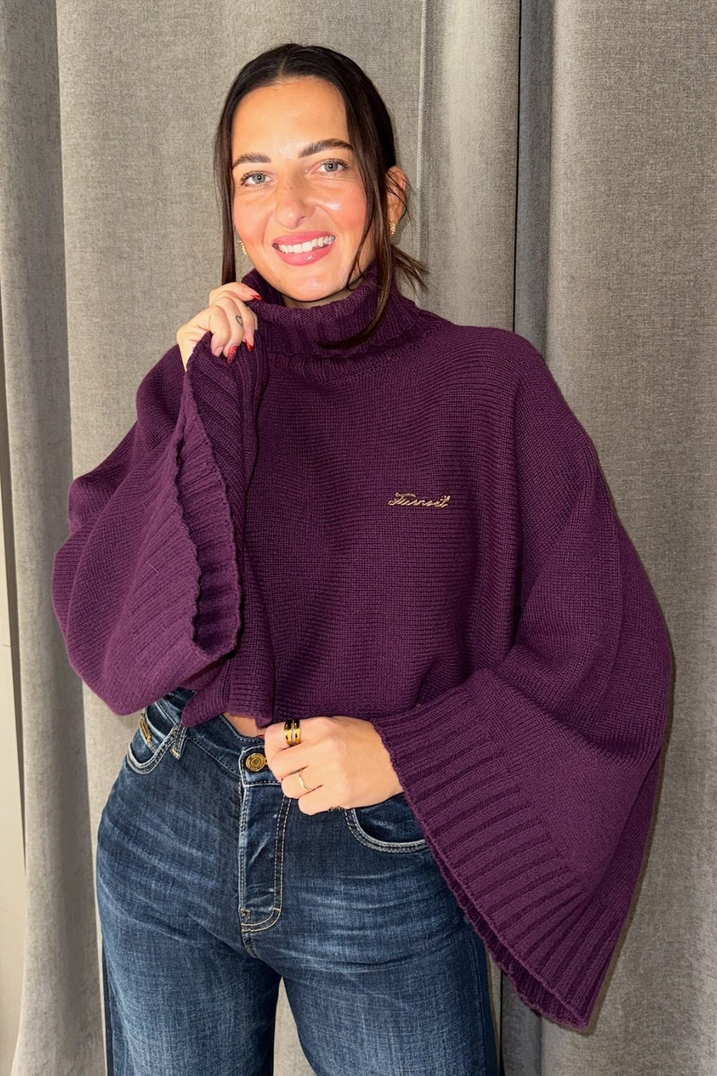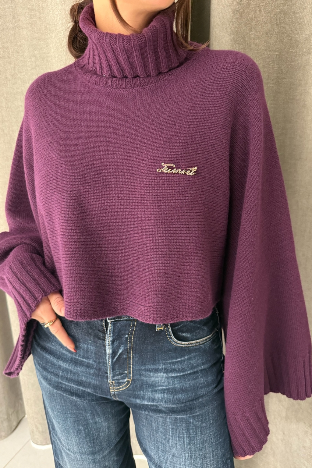 Dámský svetr značky TWINSET je vyroben z pleteniny. Má volný střih, vysoký límec, zkrácenou délku do pasu a dlouhé raglánové rukávy s žebrovanou manžetou vespod. Model má na hrudi brož s logem značky TWINSET.