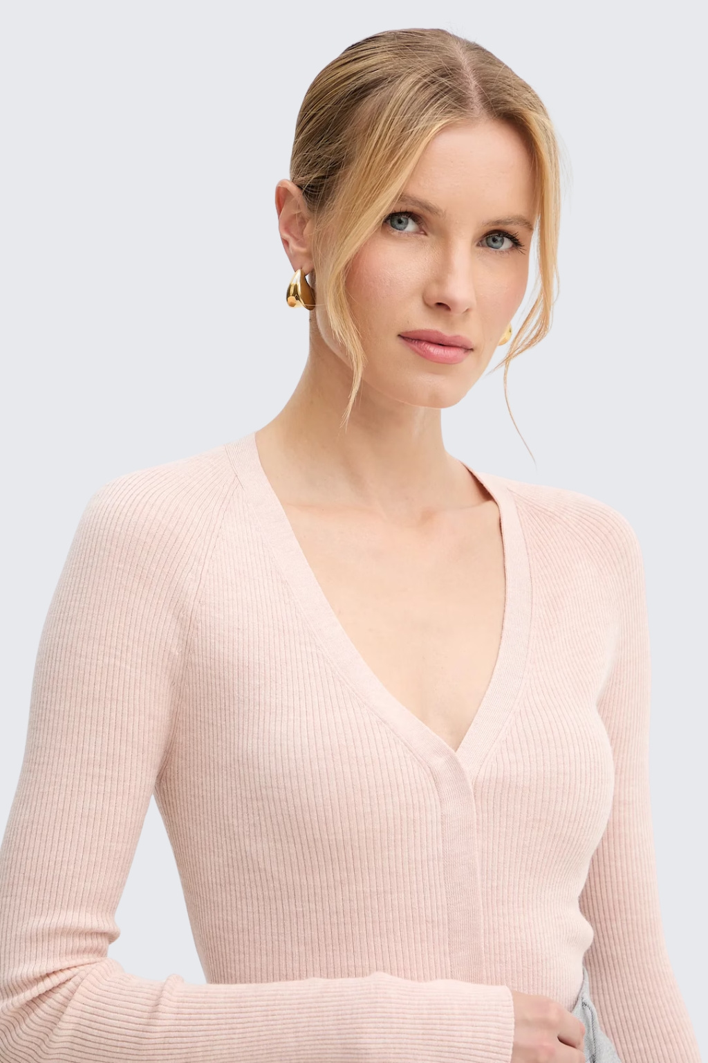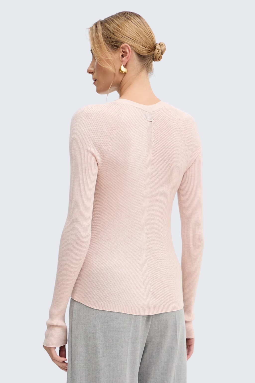 Dámský svetřík BOSS Black Friva ve světle růžové barvě.